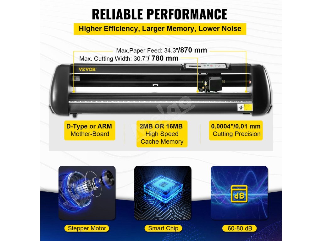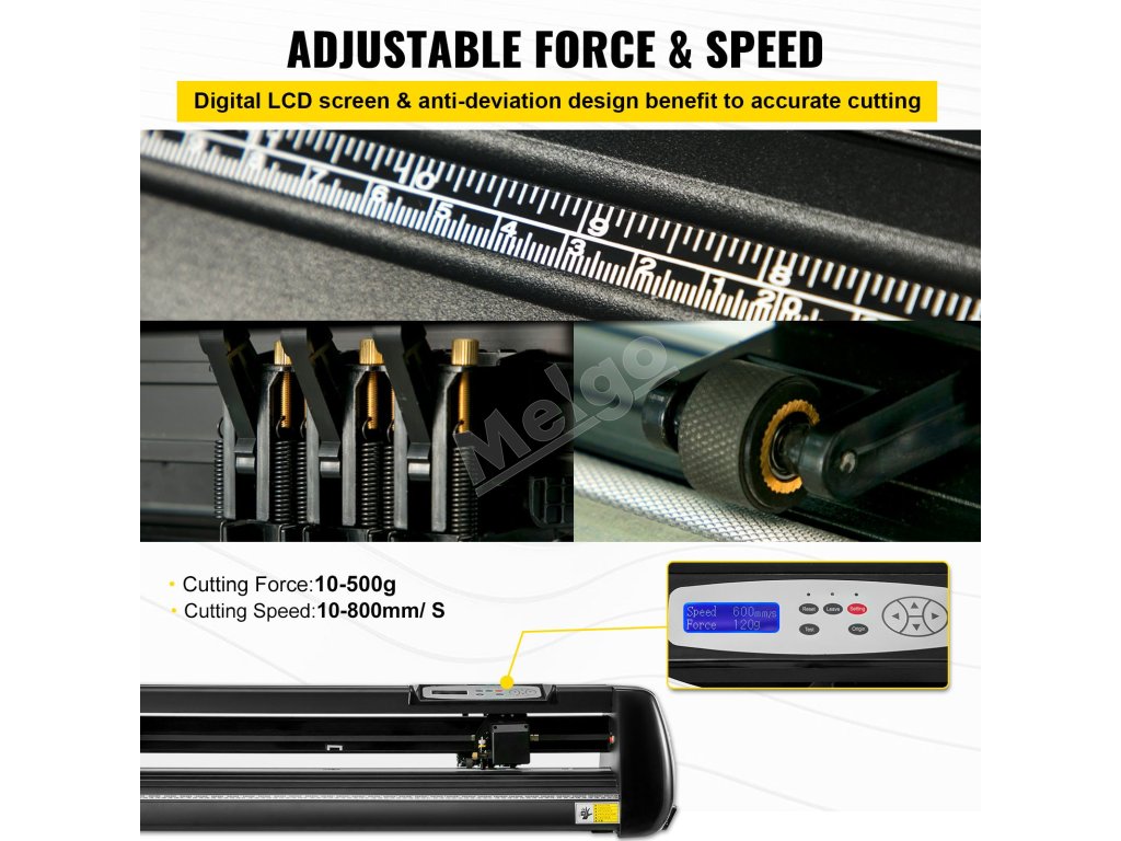 Tento 34" profesionálny ploter na rezanie vinylu so stojanom sa dodáva s ľahko použiteľným softvérom Design a SIGNMASTER, ktorý umožňuje vyrezávať profesionálne prispôsobené návrhy a značky, pričom vám dáva možnosť používať vlastné písma, importovať vlastné umelecké diela a kresliť tvary! Naša rezačka vinylu má robustnú konštrukciu s odolným krokovým motorom, ktorý poskytuje vysokú rýchlosť a nízku hladinu hluku. Maximálny posuv papiera: maximálna šírka rezu: 30,7" / 780 mm.