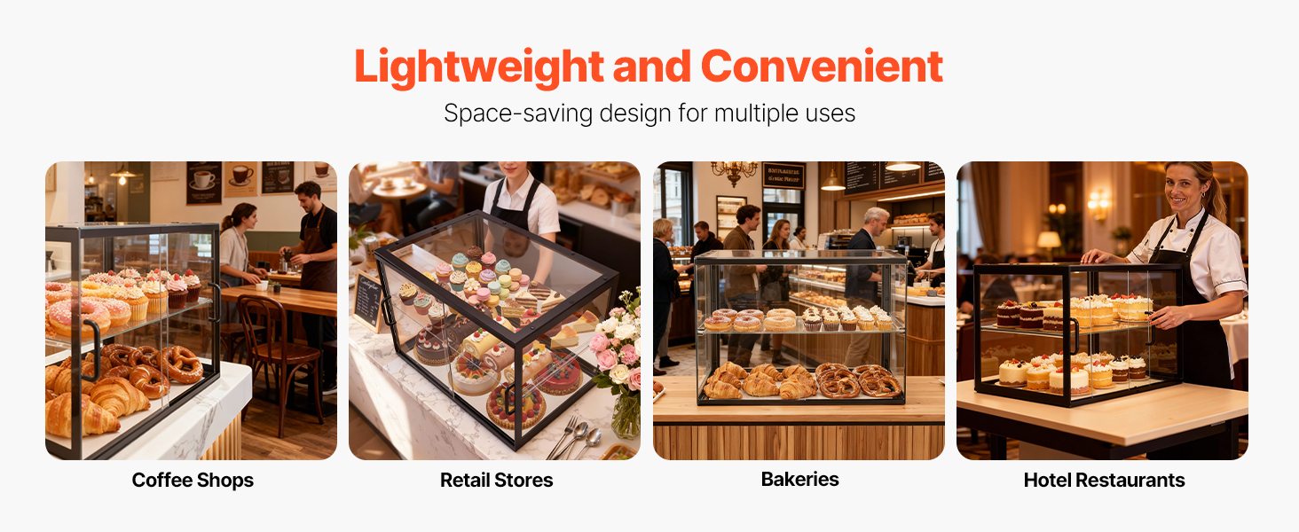 Naša vitrína na potraviny je ideálna pre pekárne, kaviarne, snack bary, obchody s rýchlym občerstvením a reštaurácie a môže slúžiť aj ako vitrína na snacky alebo cukrovinky. Jej multifunkčný dizajn sa hodí do akéhokoľvek prostredia – od potravinových trhov po stánky s dezertmi – a zlepšuje prezentáciu produktov a vizuálnu atraktívnosť.