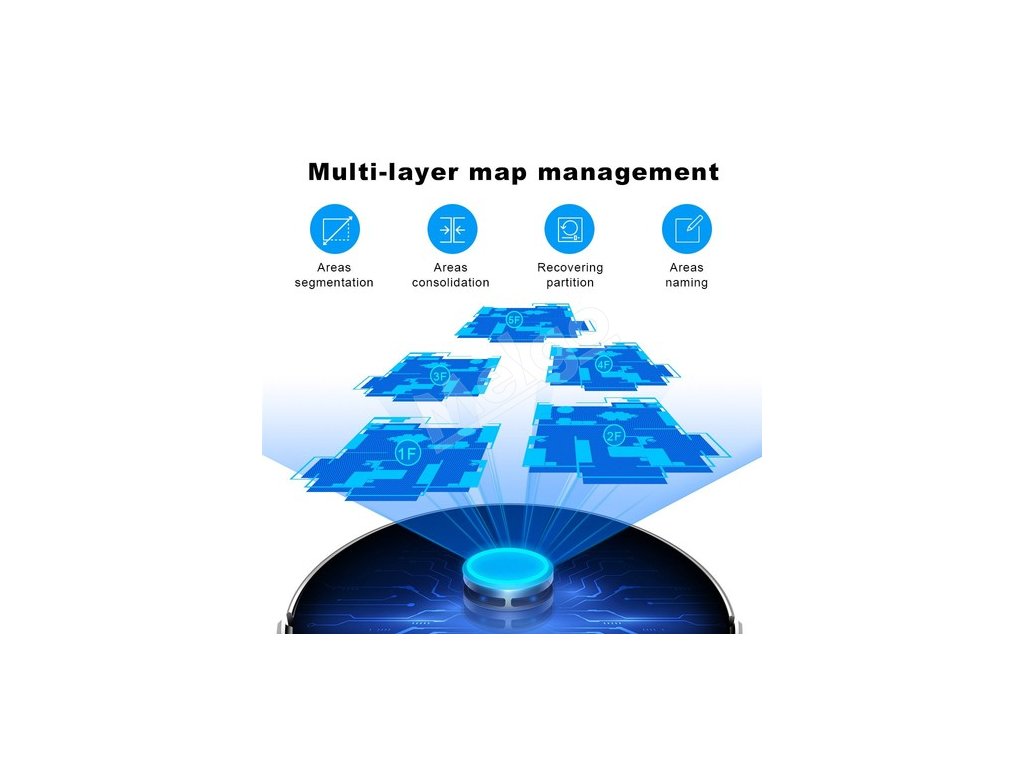 Mapa sa vytvára pri čistení v podniku a ukladá sa v aplikácii, čím sa šetrí čas a elektrická energia. Nemusíte sa obávať, že robot vyčistí ďalšiu vrstvu, keď vyčistí mapu prvej vrstvy.