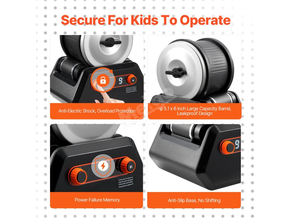Vyberte si z 9 presných nastavení rýchlosti prispôsobených pre každú fázu bubnovania s časovačom s predĺžením až na 9 dní. Jednoducho nastavte bubon na kamene a nechajte ho pracovať, čím si uvoľníte čas na iné činnosti.