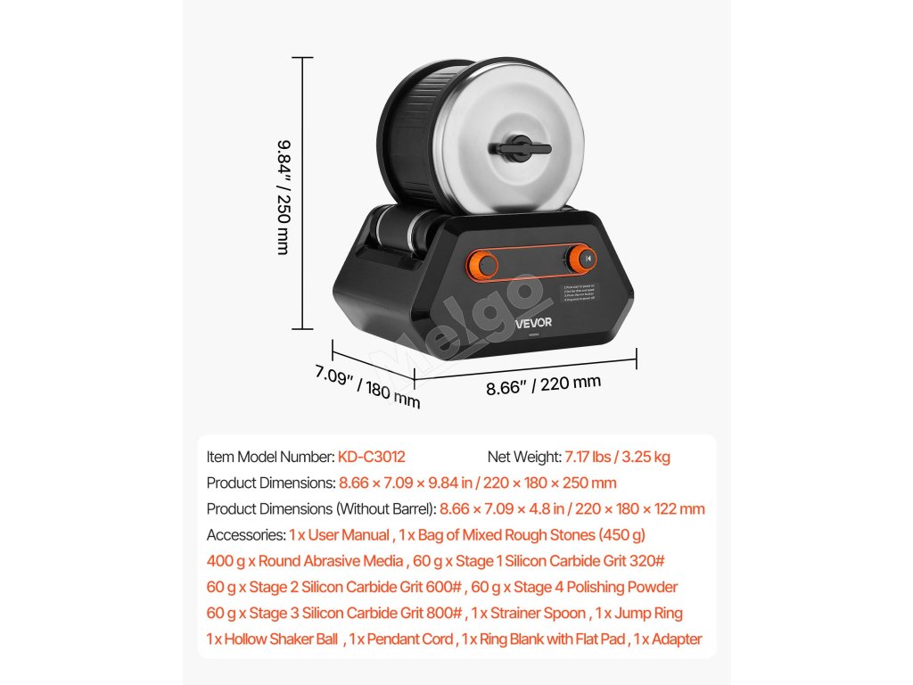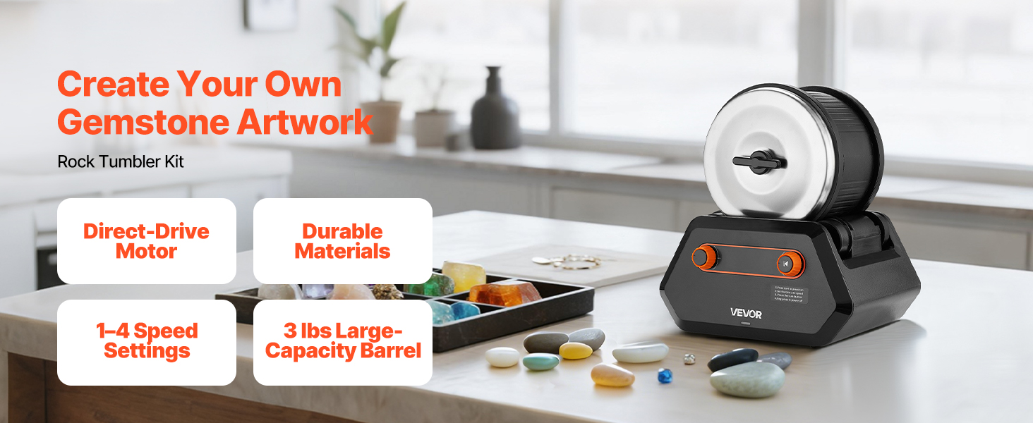 Táto súprava bubna na kamene je vybavená motorom s priamym pohonom pre plynulú a tichú prevádzku a odolnými materiálmi pre dlhodobé používanie. Ponúka 1 až 4 nastavenia rýchlosti na splnenie rôznych potrieb brúsenia. Veľkokapacitný valec pojme viac kameňov na zvýšenie účinnosti, Ideálne pre hobby a profesionálnych používateľov!