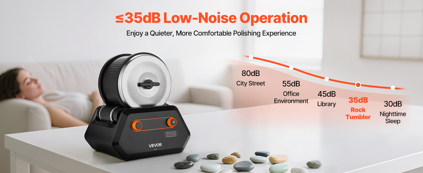 Táto súprava na leštenie kameňov pracuje s hlučnosťou až 35 dB, podobne ako tichá knižnica, takže leštenie je tichšie a pohodlnejšie. Zaručuje dlhodobé používanie bez rušivého hluku a ponúka pokojný zážitok pre domáce kutilské aj profesionálne použitie.