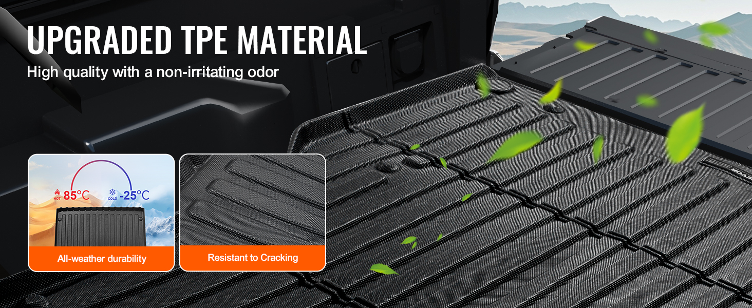 Rohož do lôžka nákladného vozidla je vyrobená z vylepšeného materiálu TPE, ktorý poskytuje ochranu pred slnkom, dažďom a ostrými predmetmi za každého počasia. Je vodotesná, odolná proti prenikaniu a môže sa pochváliť výhodami odolnosti proti korózii a oderu.