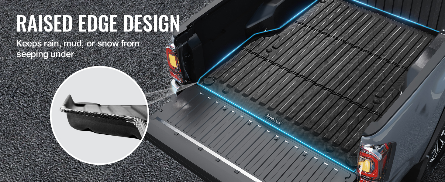 Vylepšené vyvýšené okraje rohože pre nákladné vozidlá zabraňujú vtekaniu dažďa, blata alebo snehu do lôžka, čím sa znižuje zápach a znižuje sa pravdepodobnosť, že sa na nej budú usadzovať nečistoty.