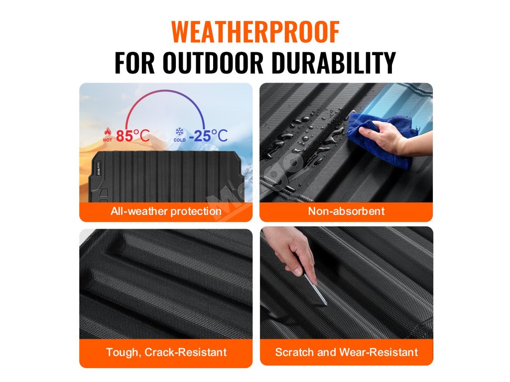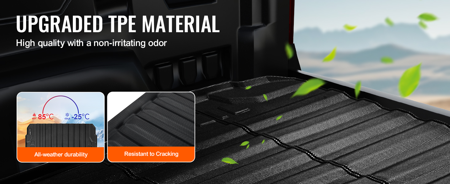Rohož do lôžka nákladného vozidla je vyrobená z vylepšeného materiálu TPE, ktorý poskytuje ochranu pred slnkom, dažďom a ostrými predmetmi za každého počasia. Je vodotesná, odolná proti prenikaniu a môže sa pochváliť výhodami odolnosti proti korózii a oderu.