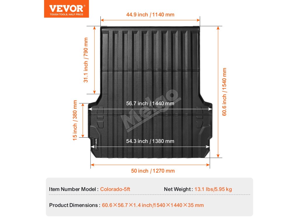 Rohož do korby tpe pre 2023–2024 modely pickupov 5 ft, hrubá celoročná