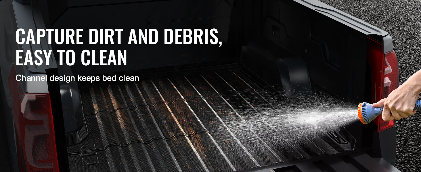 Vylepšené vyvýšené okraje rohože pre nákladné vozidlá zabraňujú vtekaniu dažďa, blata alebo snehu do lôžka, čím sa znižuje zápach a znižuje sa pravdepodobnosť, že sa na nej budú usadzovať nečistoty.