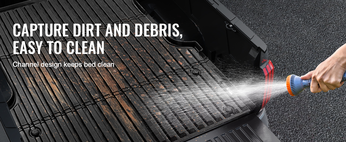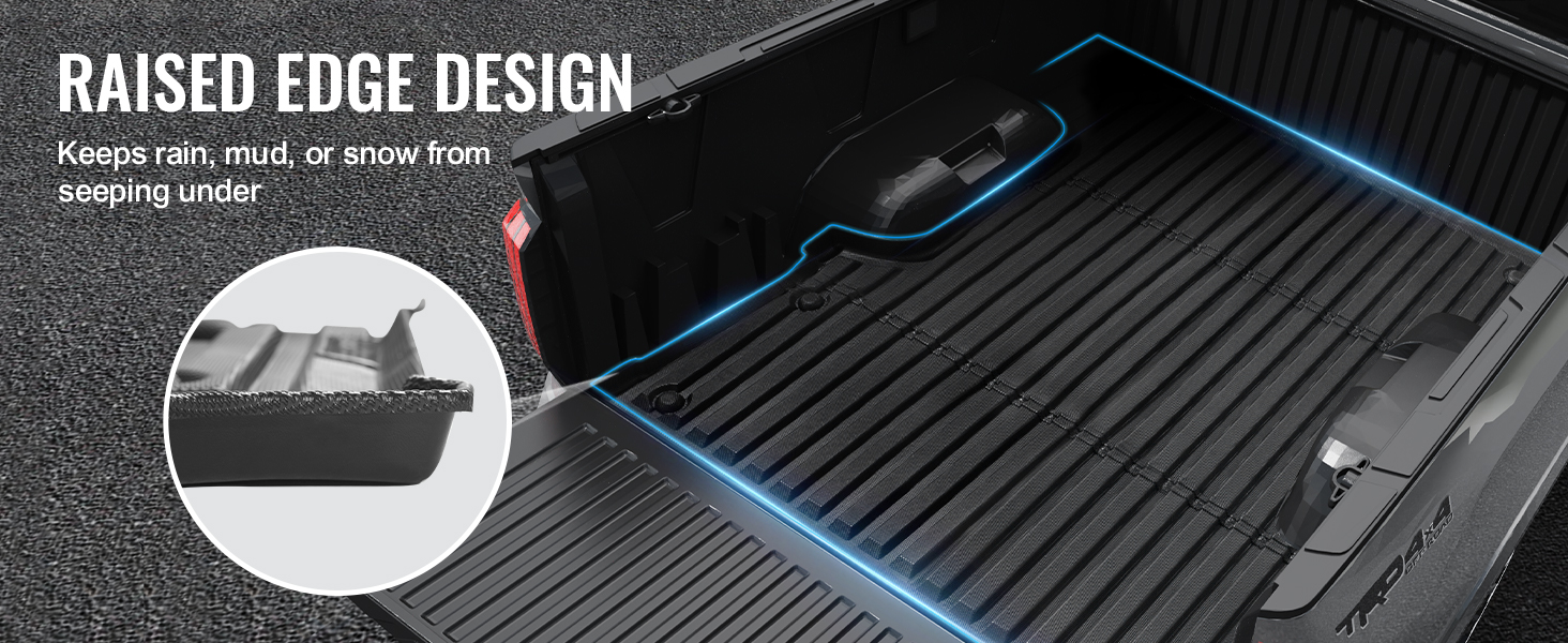 Vylepšené vyvýšené okraje rohože pre nákladné vozidlá zabraňujú vtekaniu dažďa, blata alebo snehu do lôžka, čím sa znižuje zápach a znižuje sa pravdepodobnosť, že sa na nej budú usadzovať nečistoty.