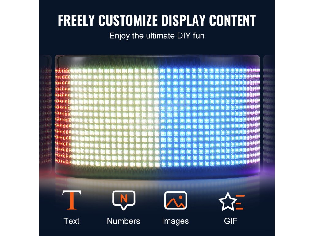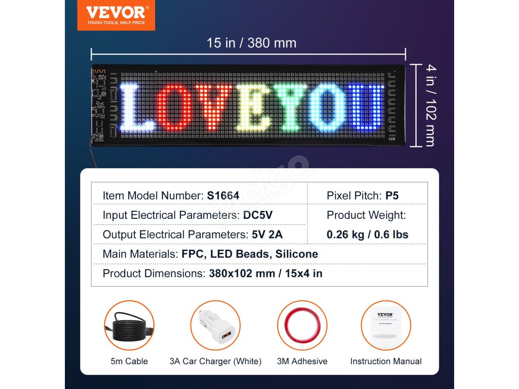 Programovateľný plnofarebný led panel p5, animácie, Bluetooth, 38×10cm