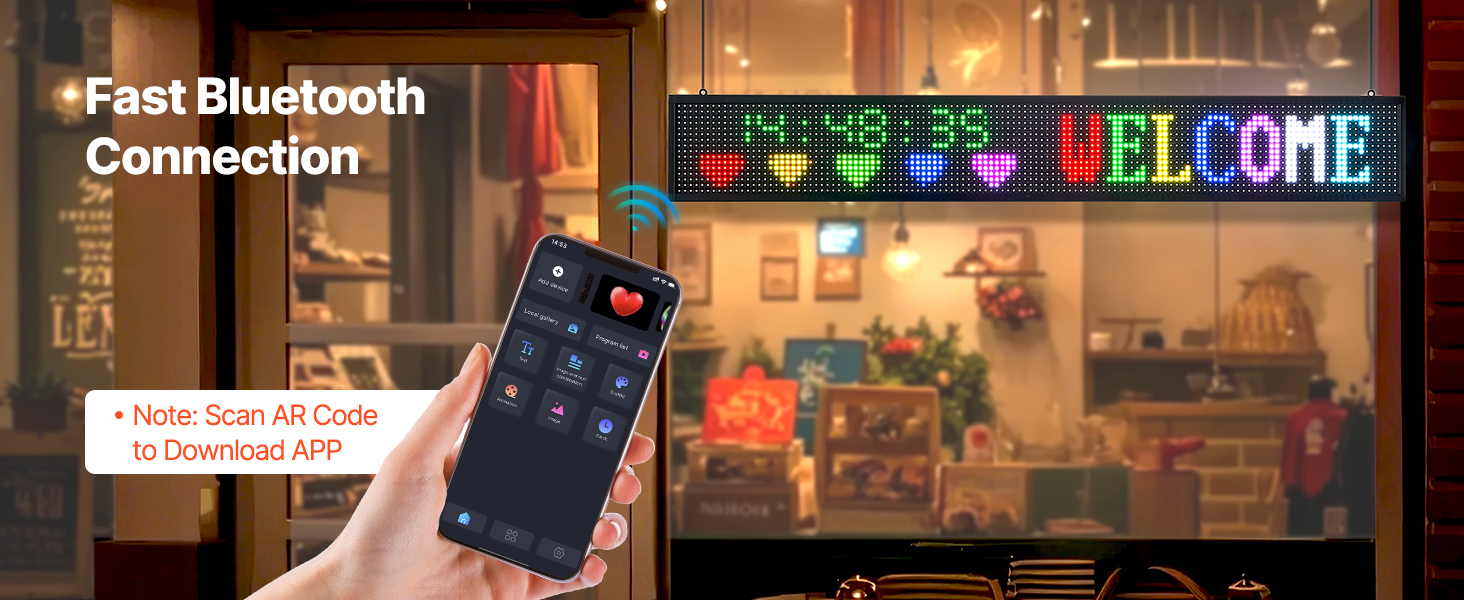 Stačí pripojiť k počítaču so systémom Windows a Bluetooth; Potom použite softvér na voľnú úpravu reklamného obsahu, ktorý vám umožní jednoducho vytvárať jedinečné reklamné posolstvá a návrhy.