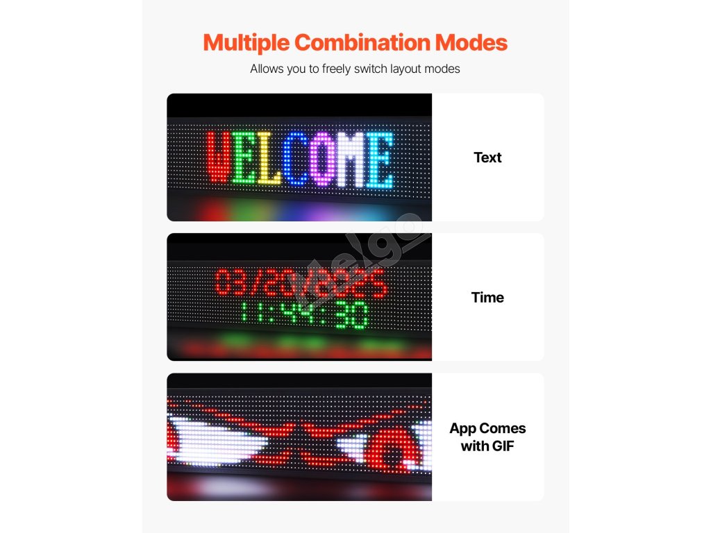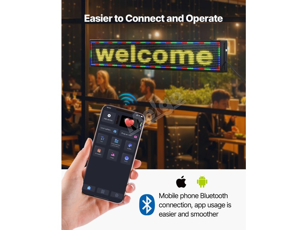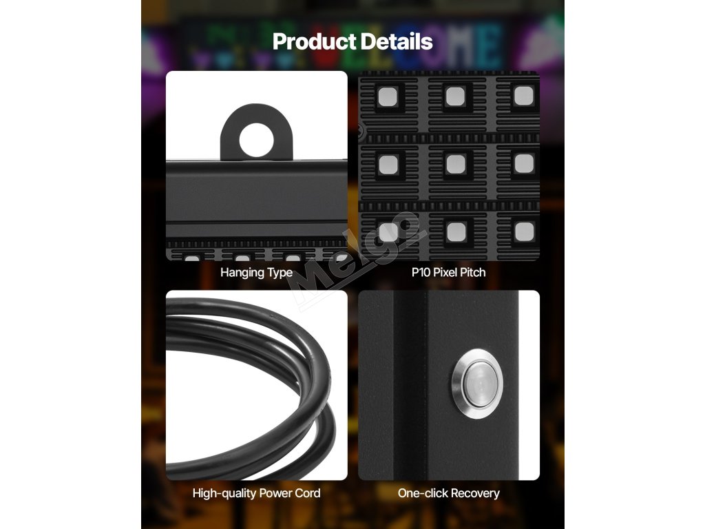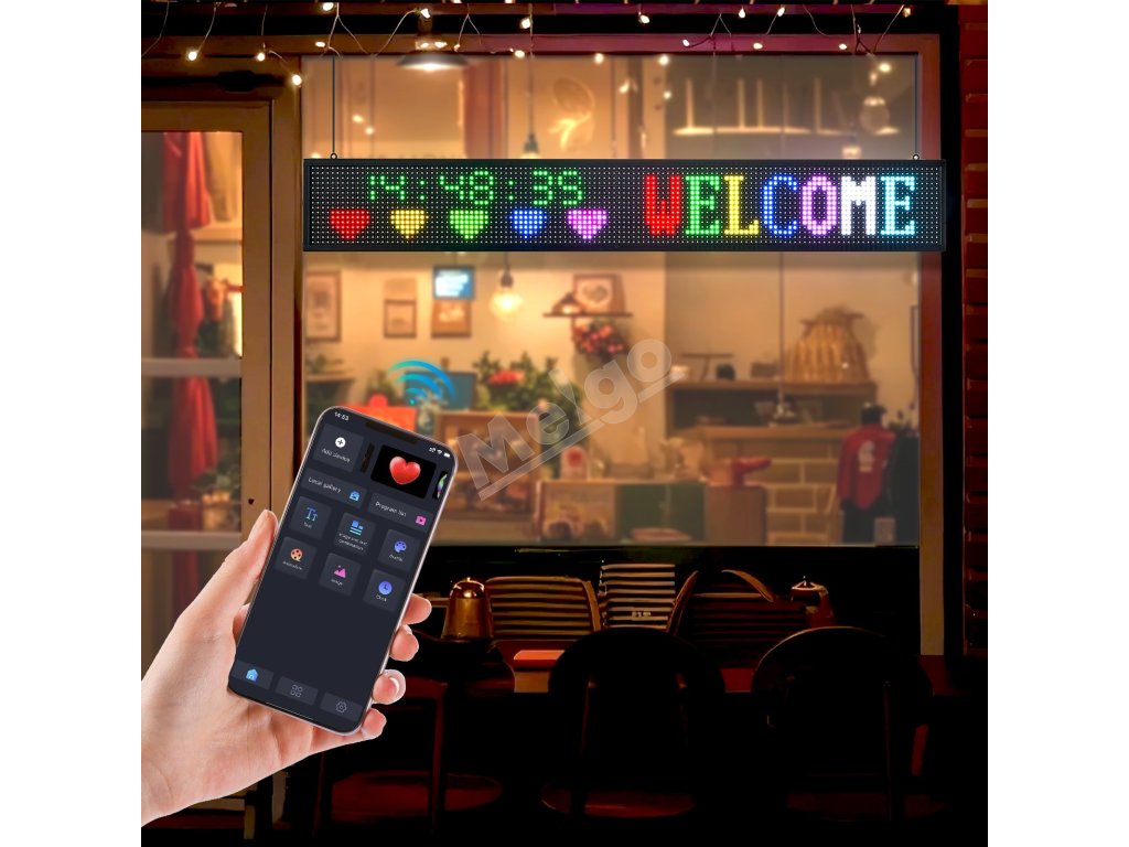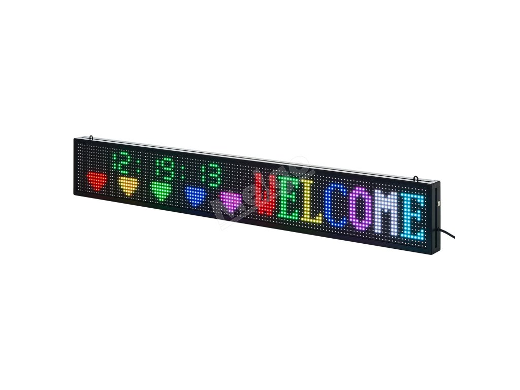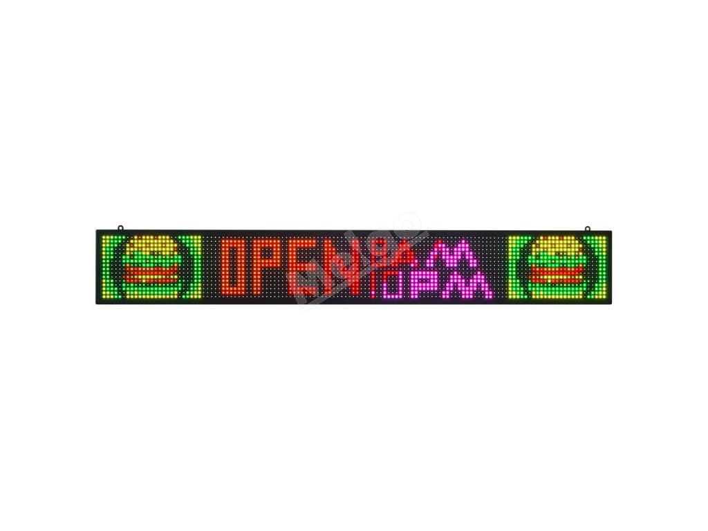 Podporuje rolovanie textu, časy a GIF. Farebné, dynamické zobrazenia textu upútajú pozornosť okoloidúcich.