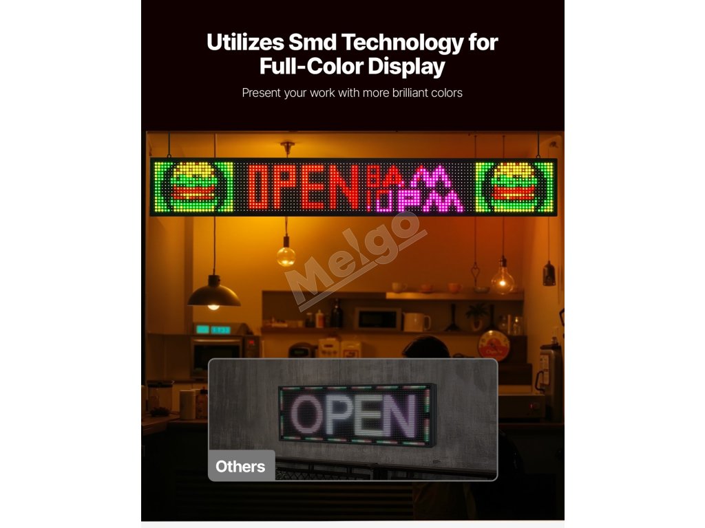 Plnofarebné reklamné LED nápisy využívajúce technológiu SMD lepšie zobrazujú vašu prácu, čím zvyšujú vašu viditeľnosť v nákupných centrách, supermarketoch a výkladoch v rôznych komerčných prostrediach.