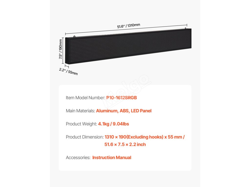 Programovateľný led panel p10 plnofarebný flexibilný bluetooth 52×8 in