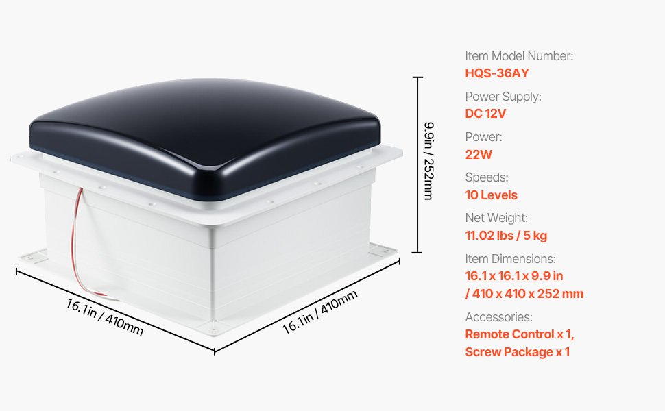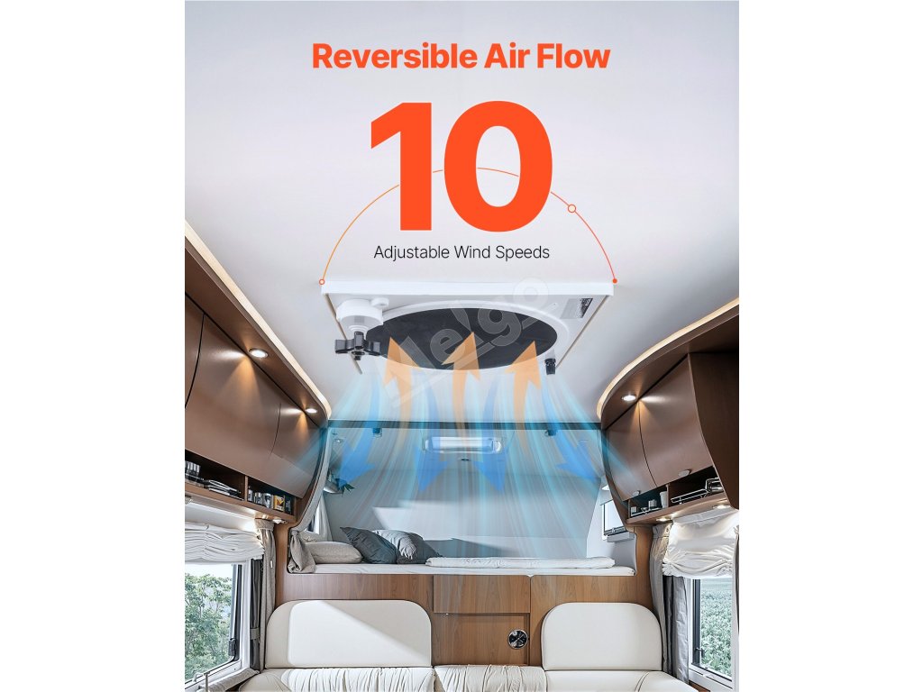 Tento strešný ventilátor pre obytné vozidlá ľahko vyrieši problémy s dusnom a vlhkosťou vo vašom obytnom vozidle! Je vybavený výkonným motorom a 10 nastaveniami rýchlosti, rýchlo odvádza teplo a vlhkosť a udržiava vo vnútri čerstvý vzduch podľa vašich potrieb.