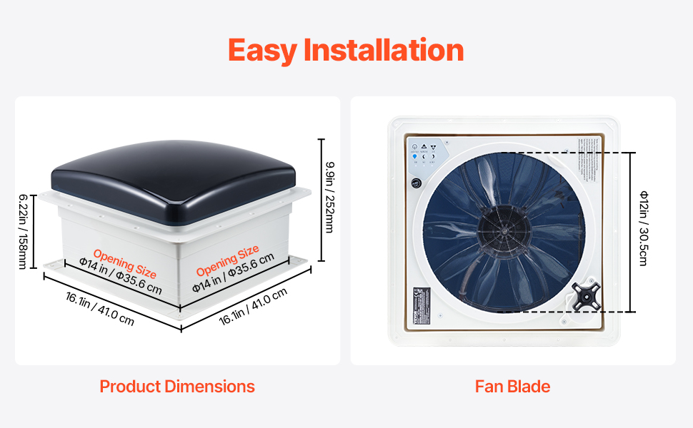Veľkosť otvoru: 14x14 palcov / 35,6x35,6 cm, kompatibilný s väčšinou karavanov. Jednoduchá inštalácia a rýchla pripravenosť na použitie!