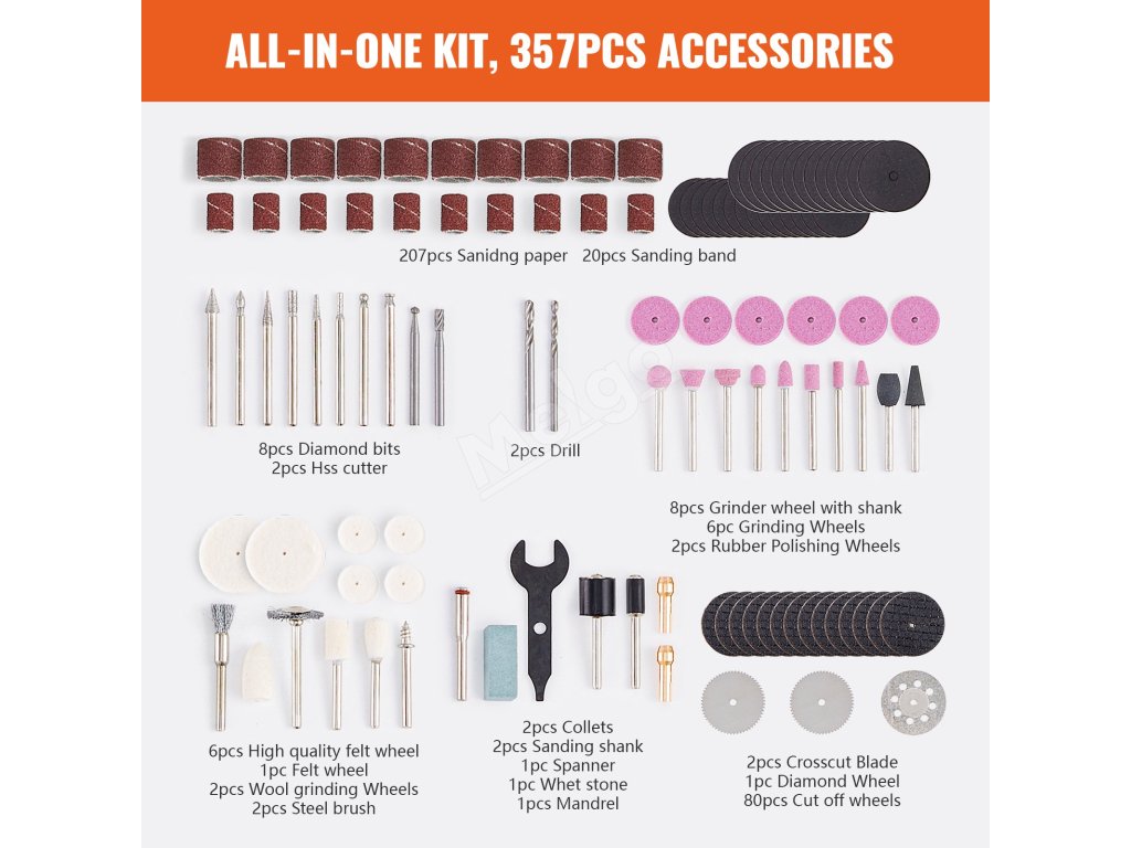 Sada príslušenstva pre rotačný nástroj 357 ks, stopka 3,2 mm