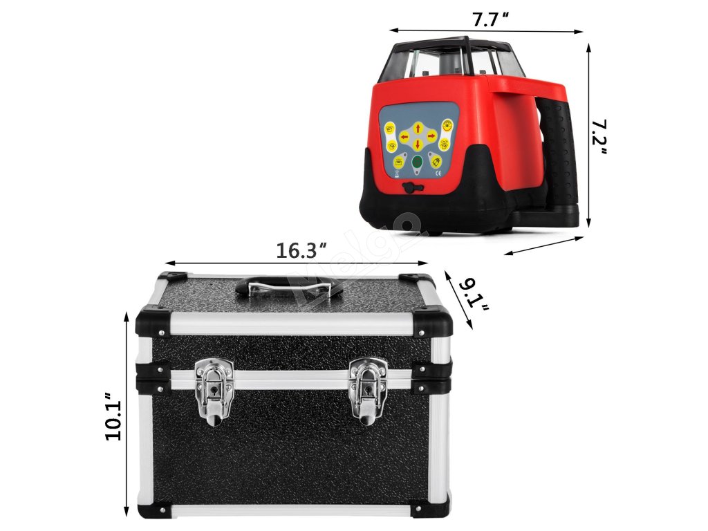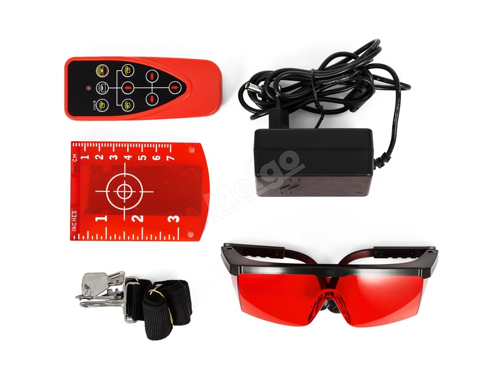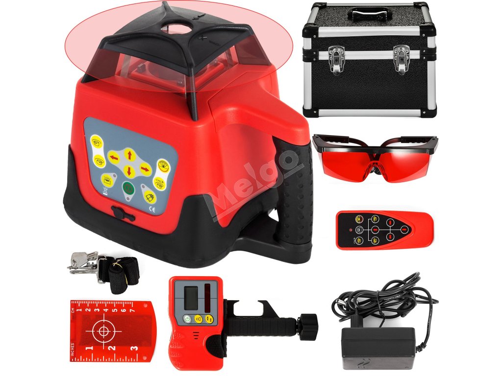 Otočný samonivelačný červený laser, prijímač, diaľkové ovládanie, kufrík