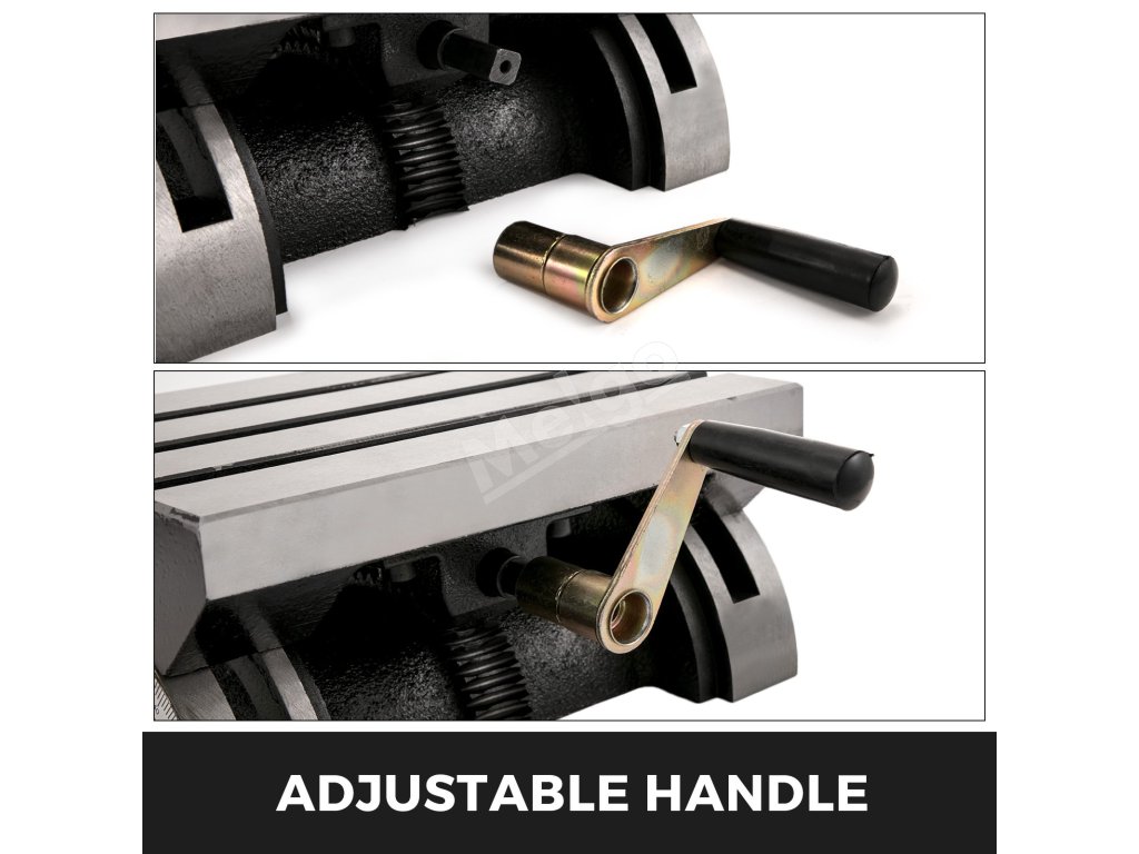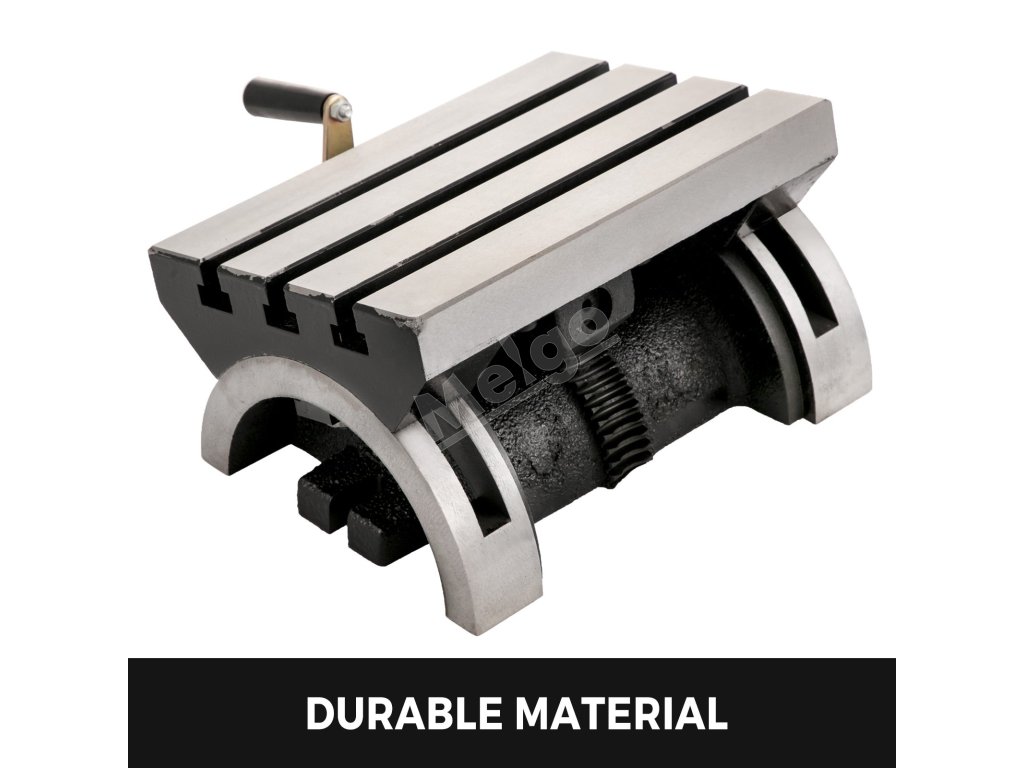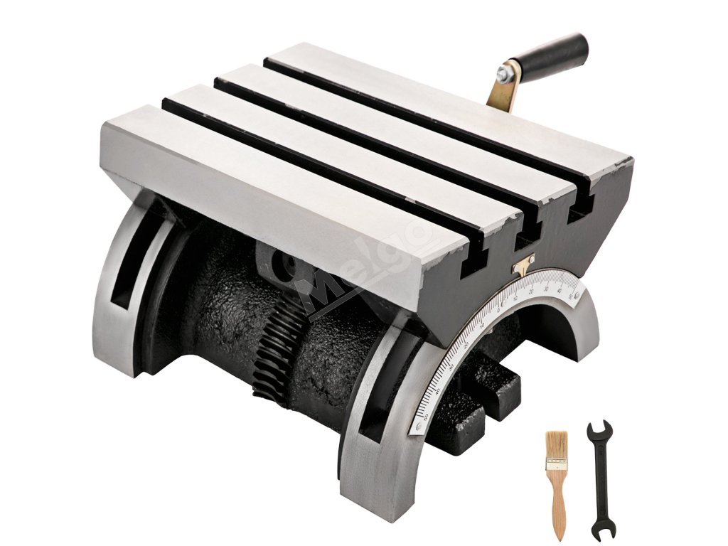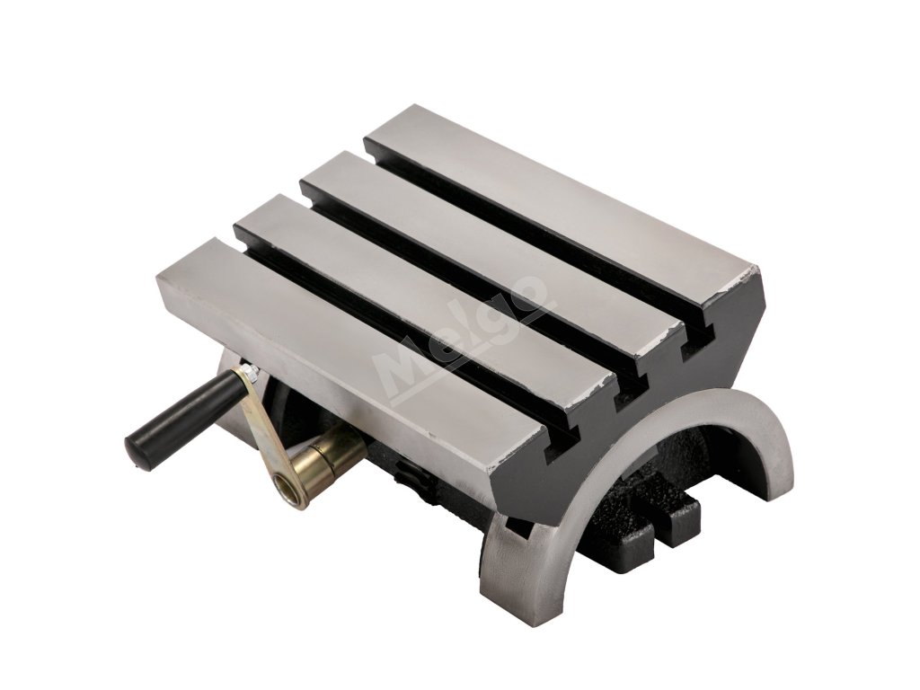 Otočný stôl pre frézku sa dodáva kompletný s kľukou, uhol môžete nastaviť podľa potreby. Rozsah od 0 do 80°.