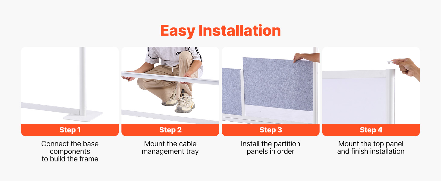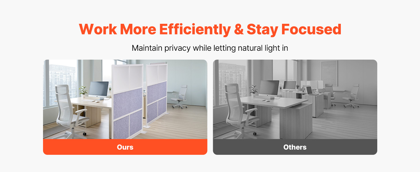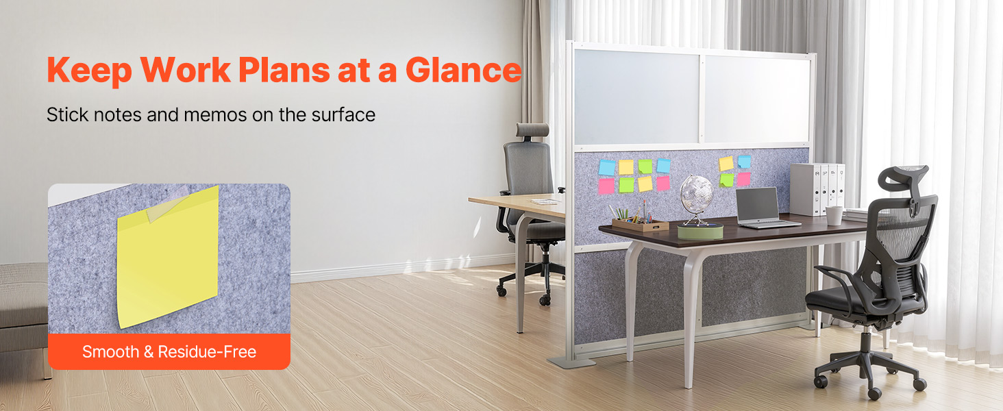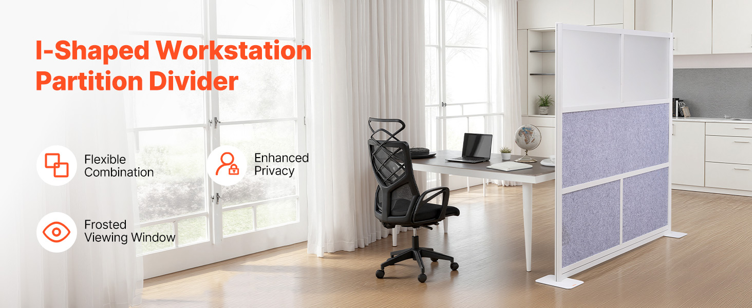 Kancelárska priečka na ochranu súkromia VEVOR je vybavená matnými akrylovými oknami, ktoré blokujú vizuálne rušivé vplyvy, chránia súkromie a prepúšťajú prirodzené svetlo - pomáhajú vám sústrediť sa a pracovať efektívnejšie.