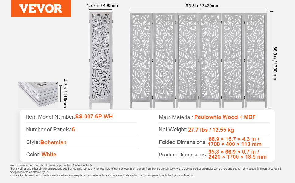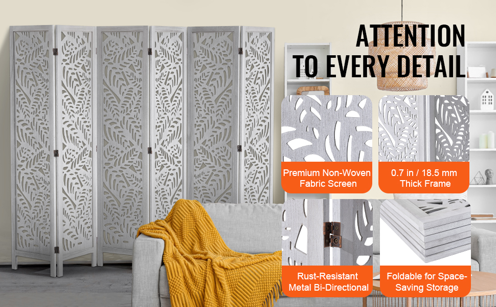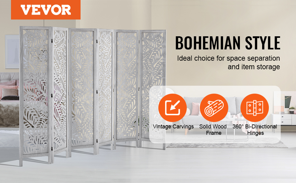 VEVOR Štýlový český 6 panelov drevený rozdeľovač izieb