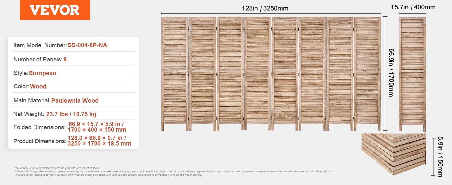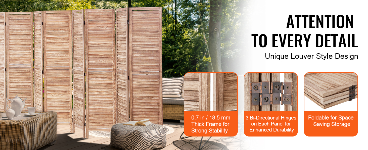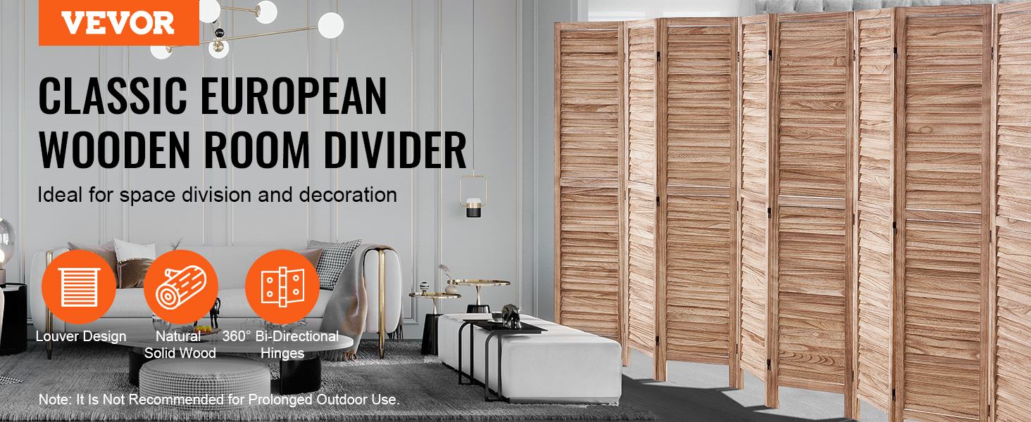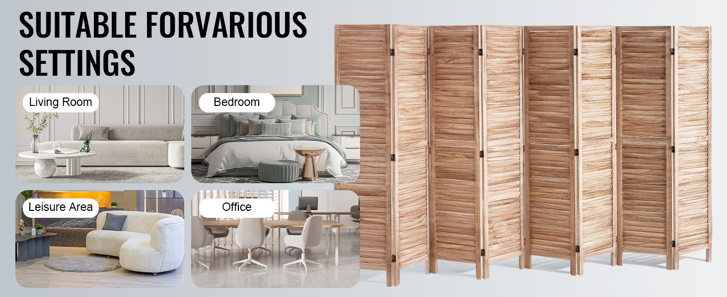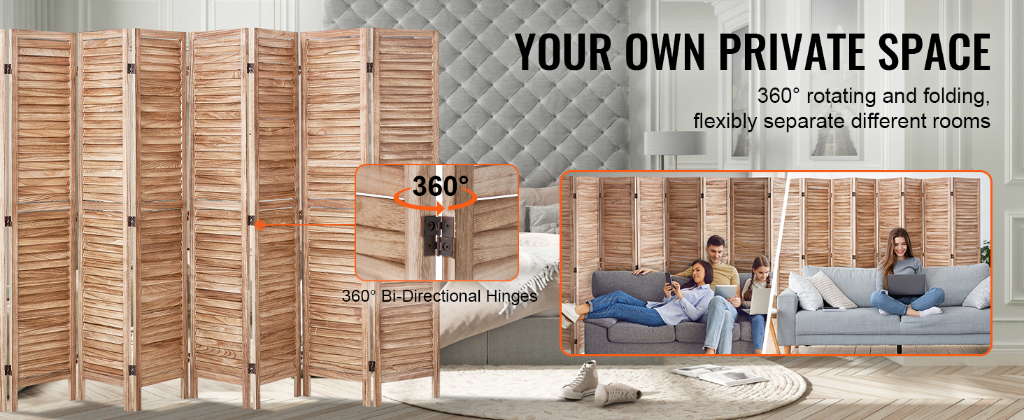 VEVOR Štýlový drevený rozdeľovač izieb s 8 panelmi
