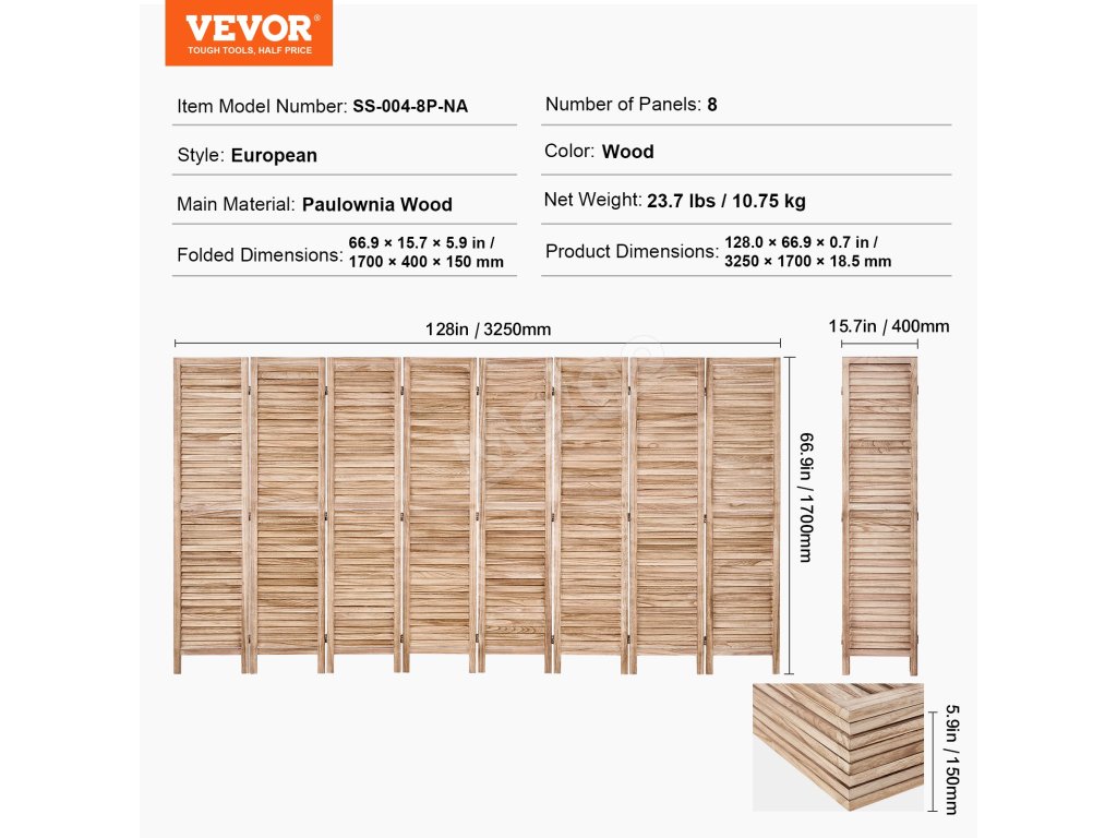 VEVOR Štýlový drevený rozdeľovač izieb s 8 panelmi