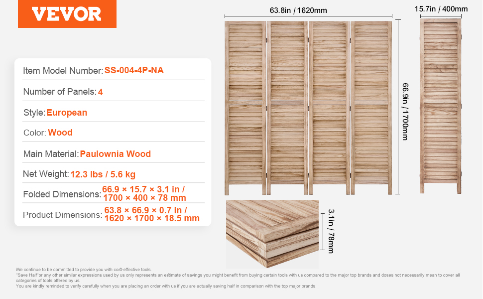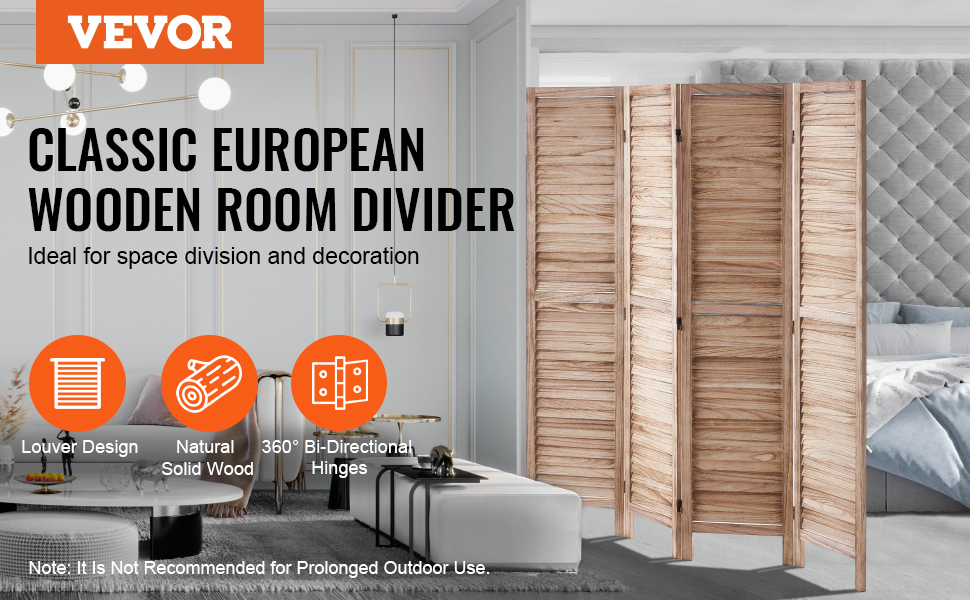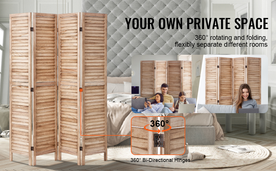 VEVOR Štýlové 4 panely Drevený rozdeľovač izieb