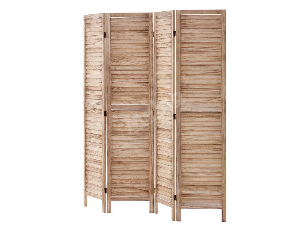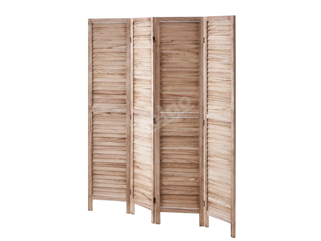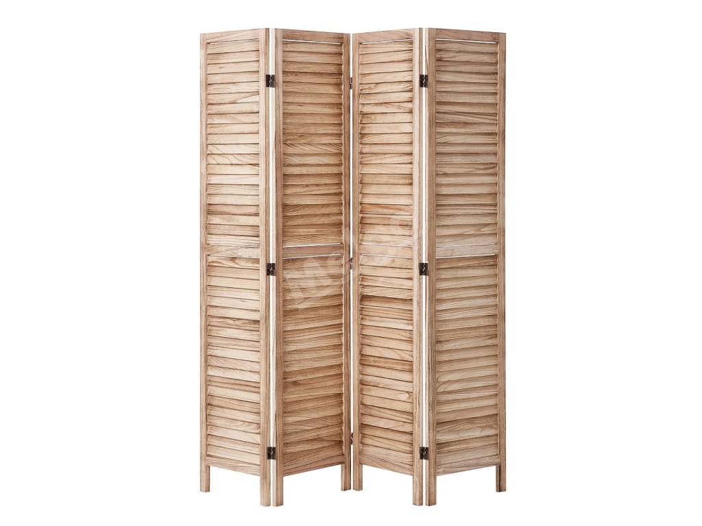 Drevený skladací paraván 4 panely, lamelový, výška 66.9 inches