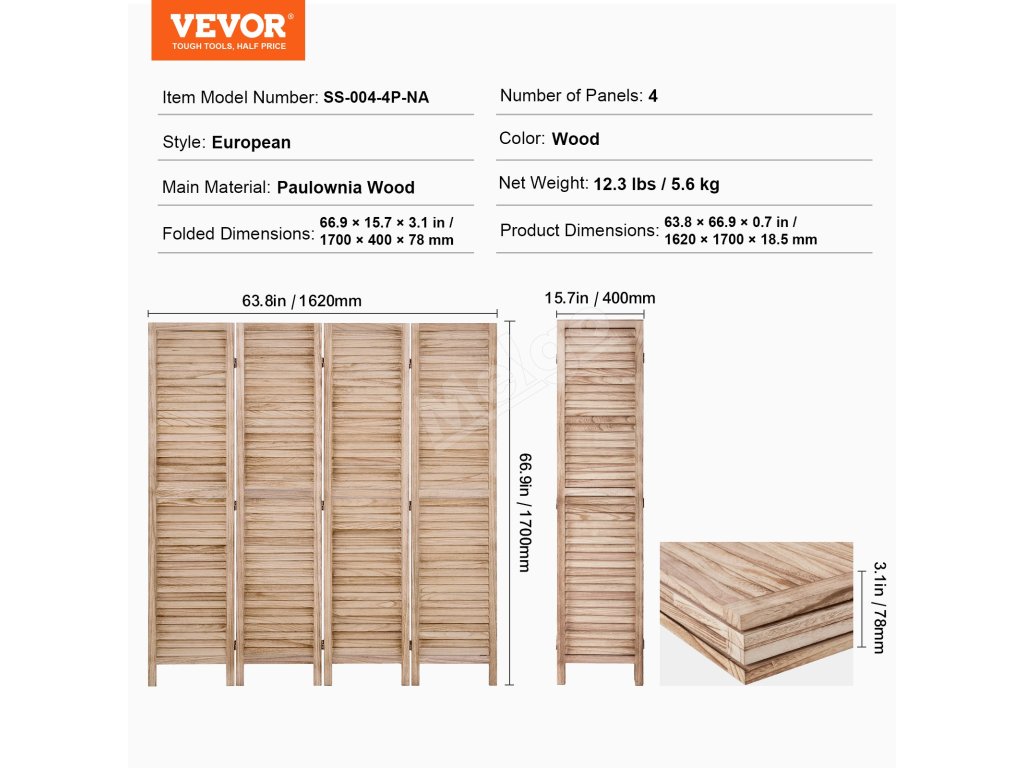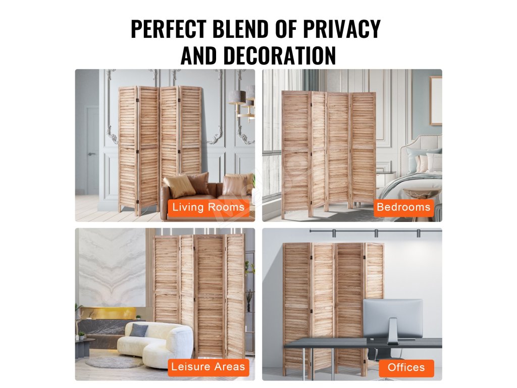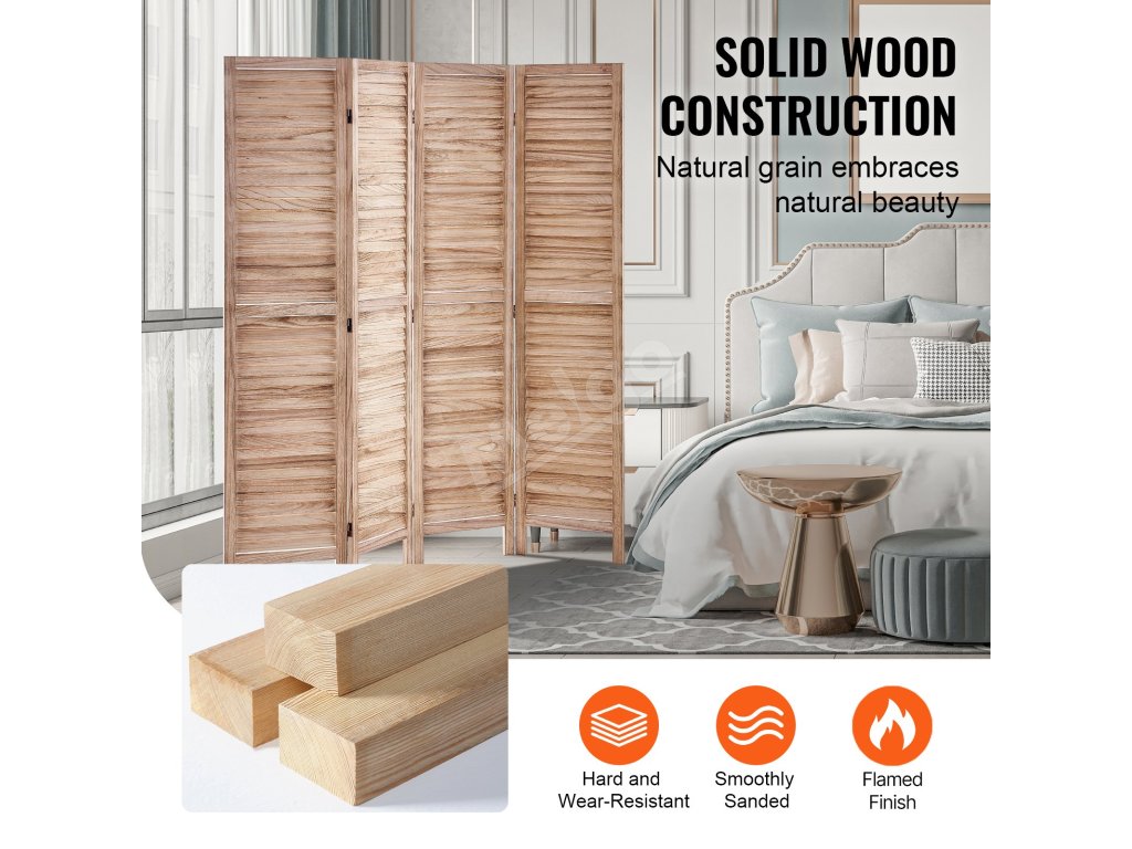VEVOR Štýlové 4 panely Drevený rozdeľovač izieb