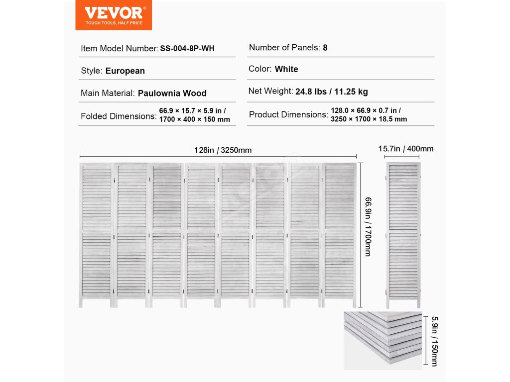 VEVOR Štýlový drevený rozdeľovač izieb s 8 panelmi