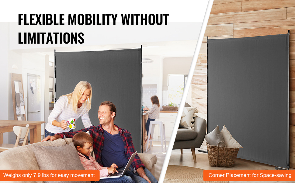 Tento skladací rozdeľovač izieb je ľahký a ľahko sa prenáša. Môžete ľahko vytvoriť dočasnú veľkú deliacu stenu a keď ju nepoužívate, môžete ju uložiť do rohu - ušetríte tak miesto.