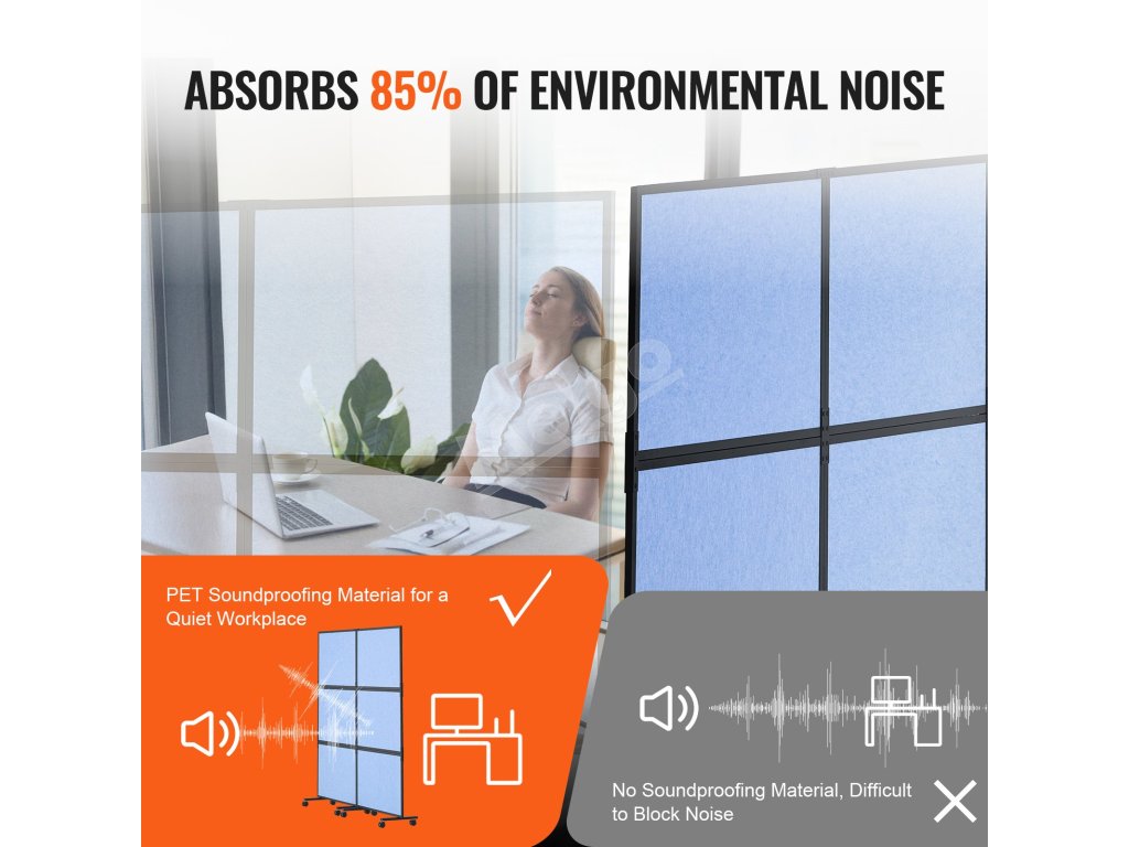 Táto akustická priečka je ideálna na vytvorenie súkromnejšieho priestoru, či už ju potrebujete do kancelárie, na relaxáciu alebo len na rozdelenie miestnosti. Účinne blokuje slnečné svetlo a poskytuje súkromie, pričom vášmu priestoru dodá štýlový nádych.