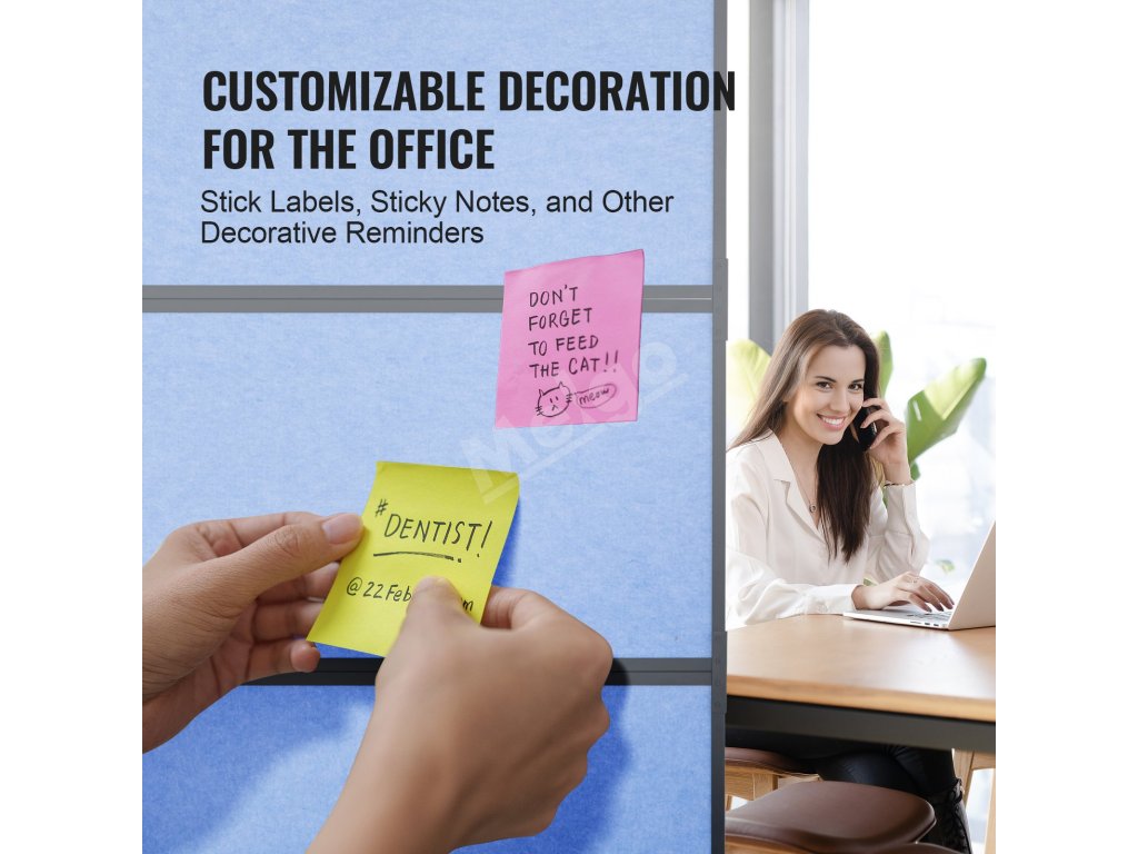 Tento paraván funguje nielen ako rozdeľovač, ale možno ho aj prispôsobiť tak, aby vyhovoval vášmu štýlu. Pripevnite zoznamy úloh, poznámky alebo fotografie, aby ste mali prehľad o priebehu práce, alebo si pracovný priestor prispôsobte pohľadnicami a inými dekoráciami.