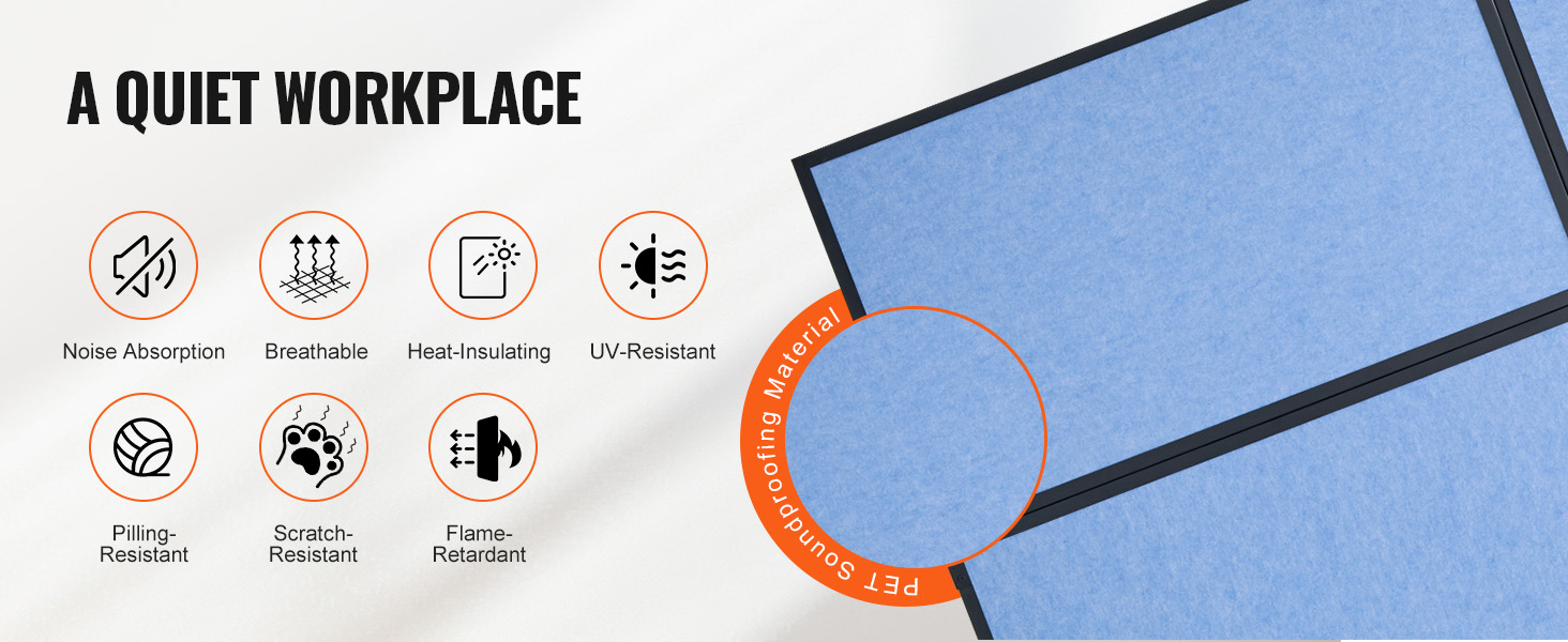 Tento rozdeľovač izieb vylepšený o zvukovoizolačný materiál PET pomáha znižovať hluk a vytvára tiché prostredie na prácu alebo odpočinok.