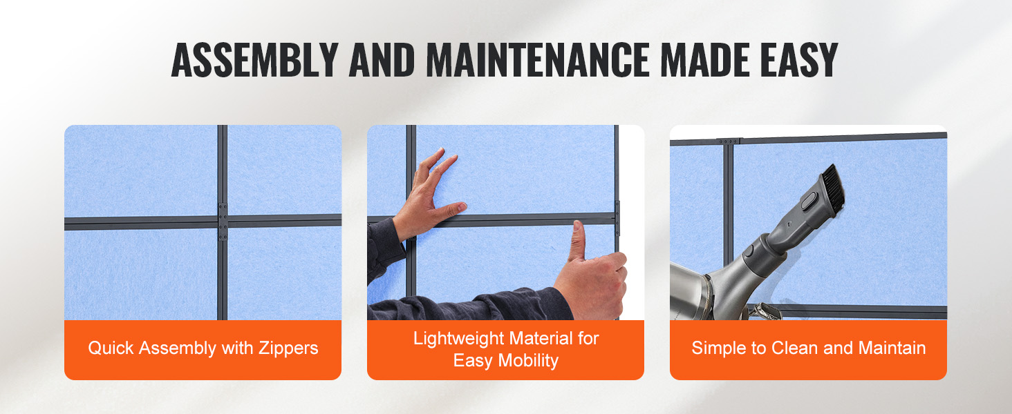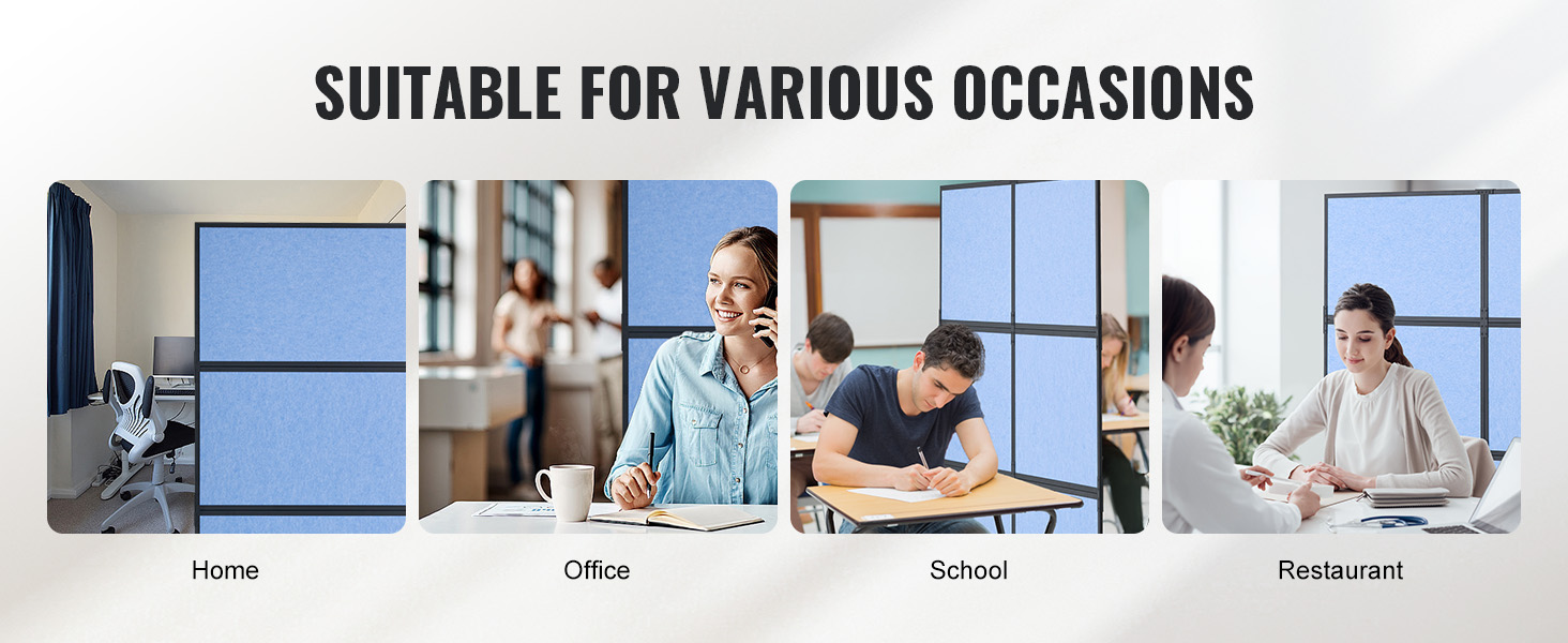 Táto prenosná deliaca stena je ideálna na rozdelenie priestorov v kanceláriách, obývacích izbách, školách, reštauráciách a pod. Možno ju použiť aj ako pozadie pre konferenčné hovory, živé vysielanie alebo videokonferencie, pričom slúži ako všestranný akustický rozdeľovač miestností.