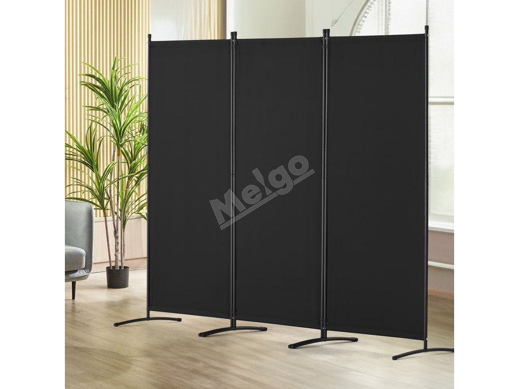 Paraván 3-dielny látkový skladací, voľne stojaci, čierny do kancelárie