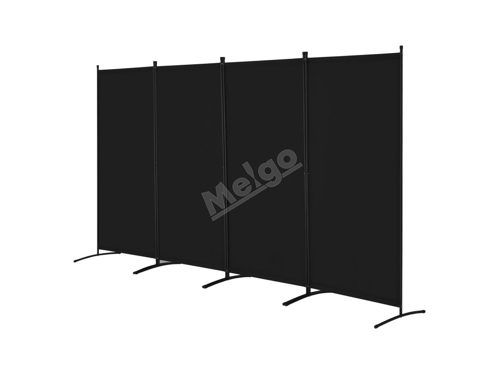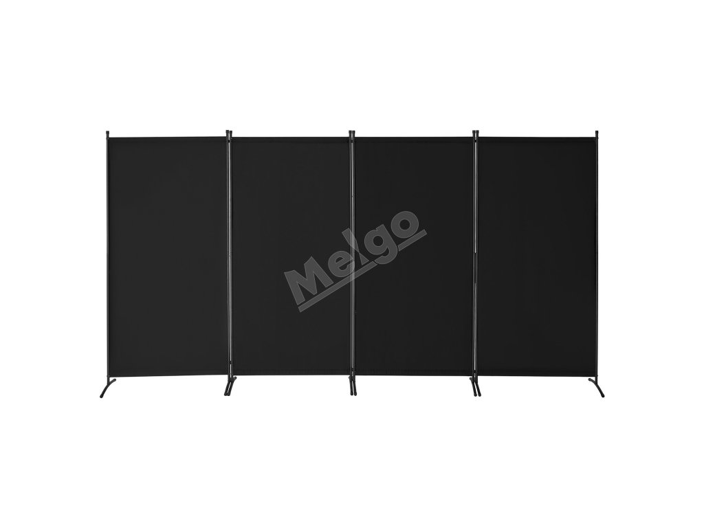 Paraván 4 panely, skladací a prenosný, voľne stojaci čierny pre izbu