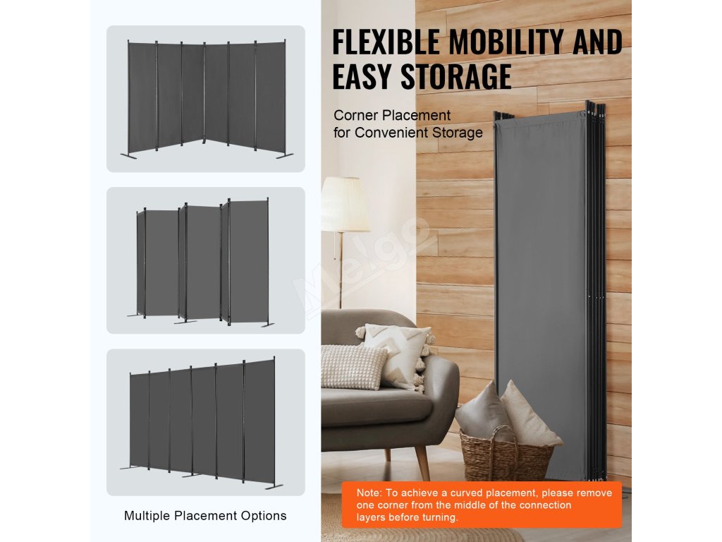 Tento skladací rozdeľovač izieb je ľahký a ľahko sa prenáša. Môžete ľahko vytvoriť dočasnú veľkú deliacu stenu a keď ju nepoužívate, môžete ju uložiť do rohu - ušetríte tak miesto.