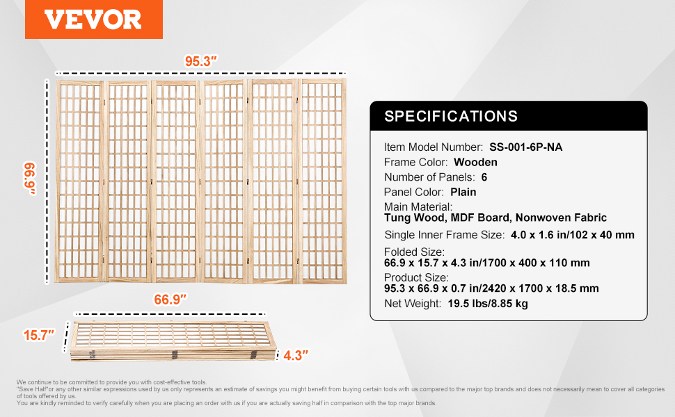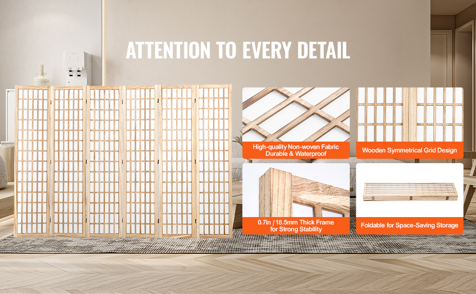 Tento paravánový rozdeľovač izieb je vybavený vysokokvalitnou netkanou textíliou, vďaka čomu je odolný a odolný proti roztrhnutiu a zároveň vodotesný a ľahko sa čistí pre všetky vaše potreby v oblasti súkromia. Stabilné oporné nožičky v spojení s dreveným rámom s hrúbkou 0,7 palca / 18,5 mm zvyšujú stabilitu pre pokoj počas používania.