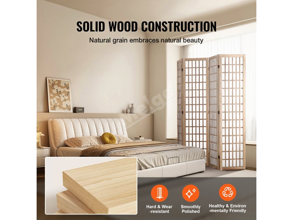 Tento deliaci priečnik do miestnosti používa na rám masívne drevo namiesto preglejky, aby sa predišlo deformácii a zlomeniu v priebehu času. Trvalo udržateľný náter na vodnej báze je hladký a bezpečný, čo zaručuje, že nedôjde k poškodeniu vašich rúk.