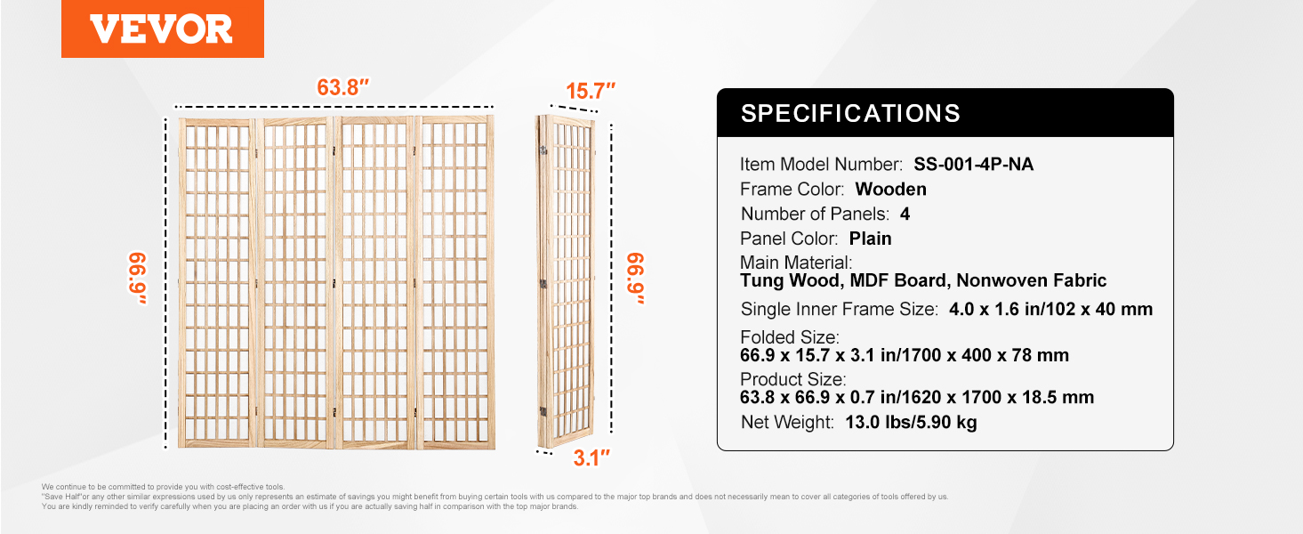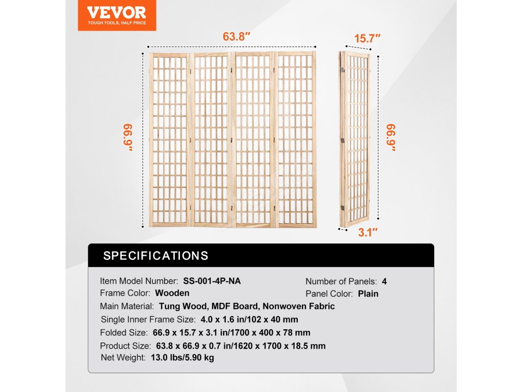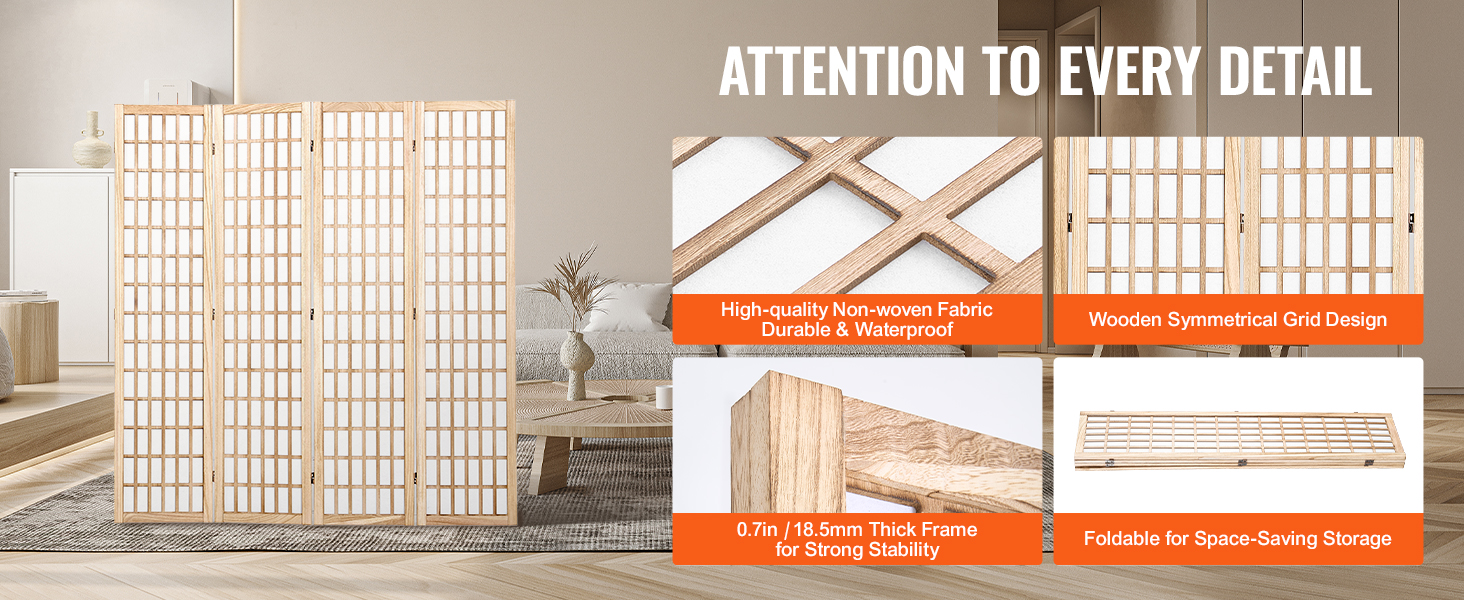 Tento paravánový rozdeľovač izieb je vybavený vysokokvalitnou netkanou textíliou, vďaka čomu je odolný a odolný proti roztrhnutiu a zároveň vodotesný a ľahko sa čistí pre všetky vaše potreby v oblasti súkromia. Stabilné oporné nožičky v spojení s dreveným rámom s hrúbkou 0,7 palca / 18,5 mm zvyšujú stabilitu pre pokoj počas používania.