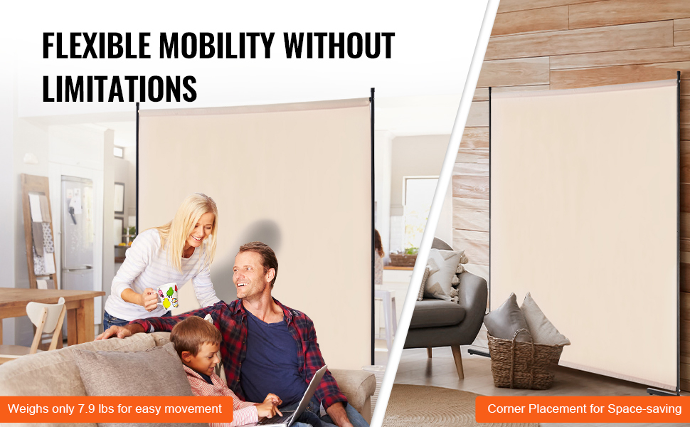 Tento skladací rozdeľovač izieb je ľahký a ľahko sa prenáša. Môžete ľahko vytvoriť dočasnú veľkú deliacu stenu a keď ju nepoužívate, môžete ju uložiť do rohu - ušetríte tak miesto.