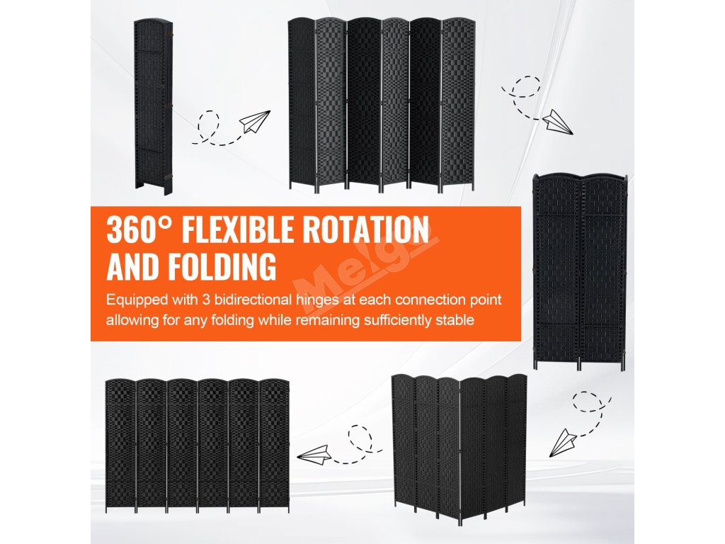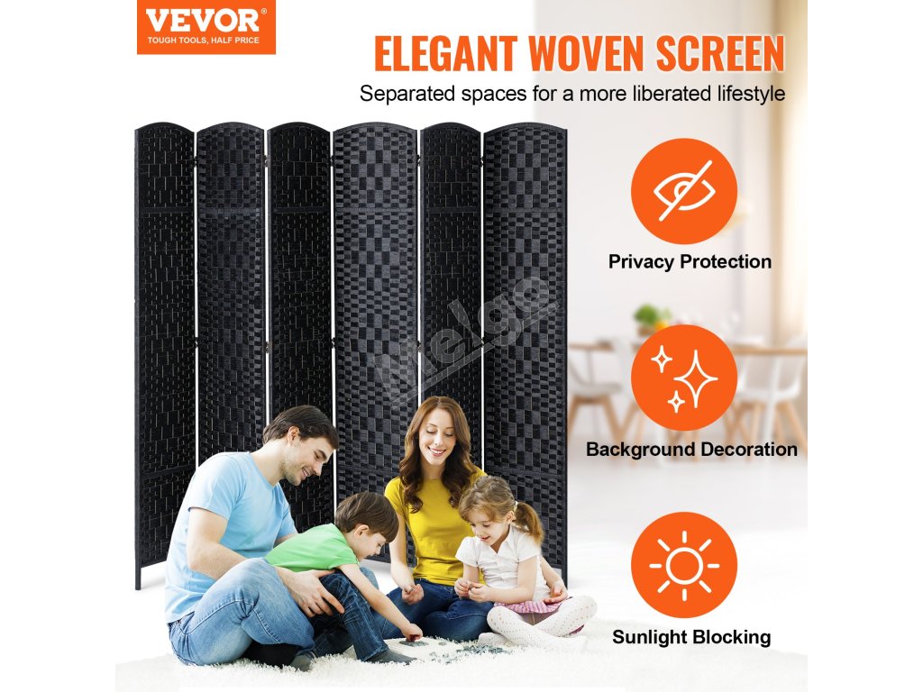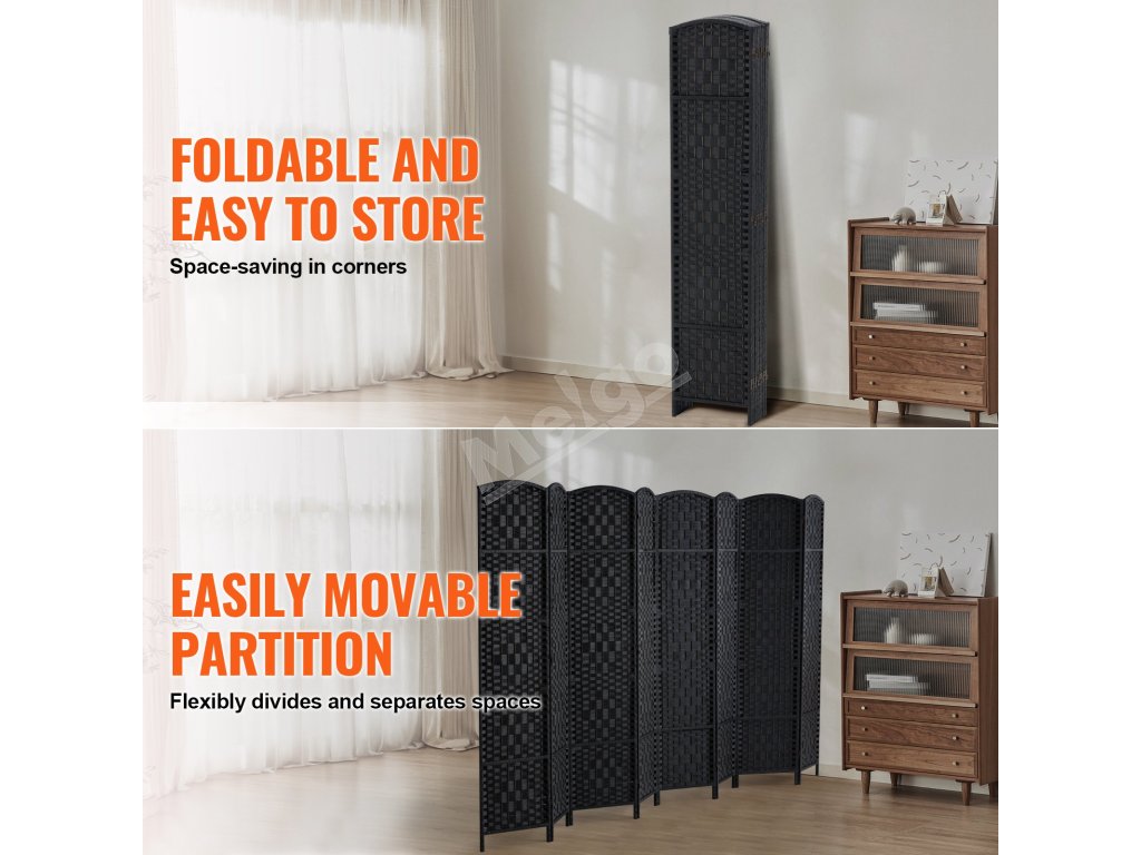 6 panelov Tkaný rozdeľovač izieb - súkromie a štýl v každom záhybe!