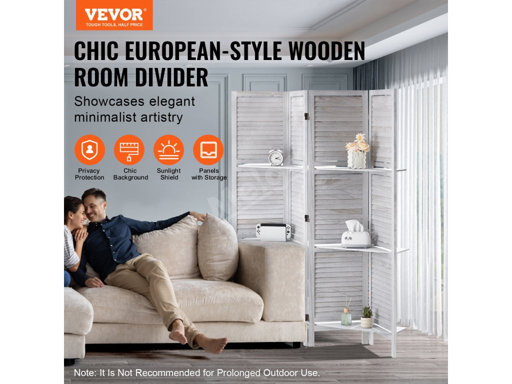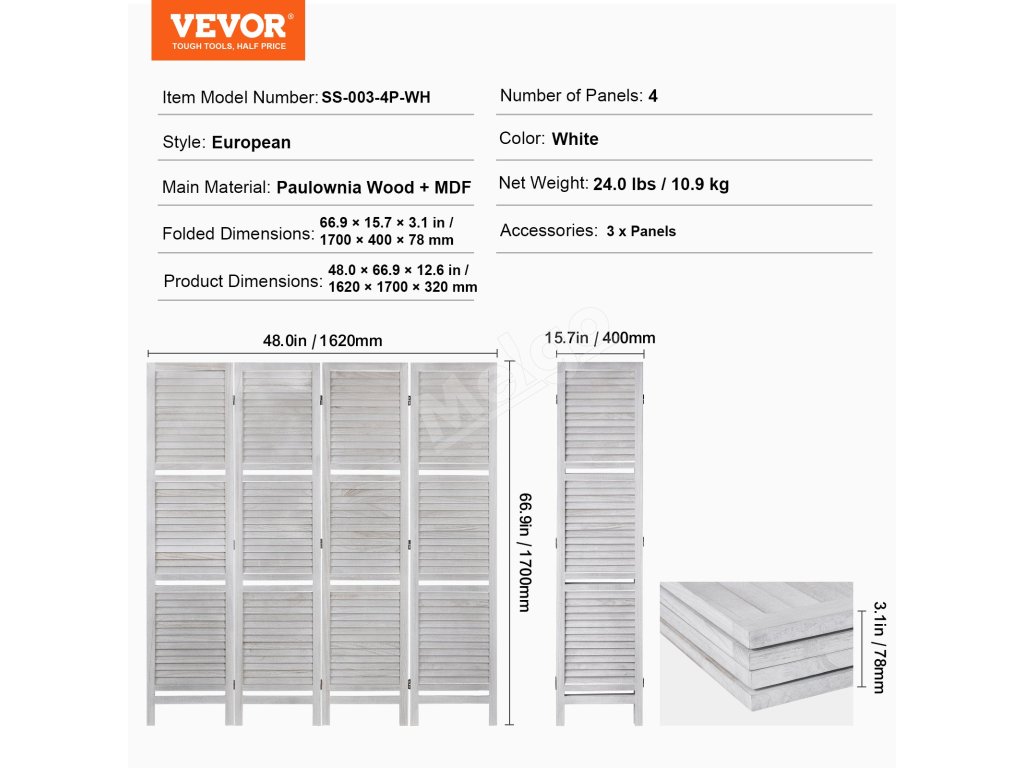 VEVOR Štýlové 4 panely Drevený rozdeľovač izieb