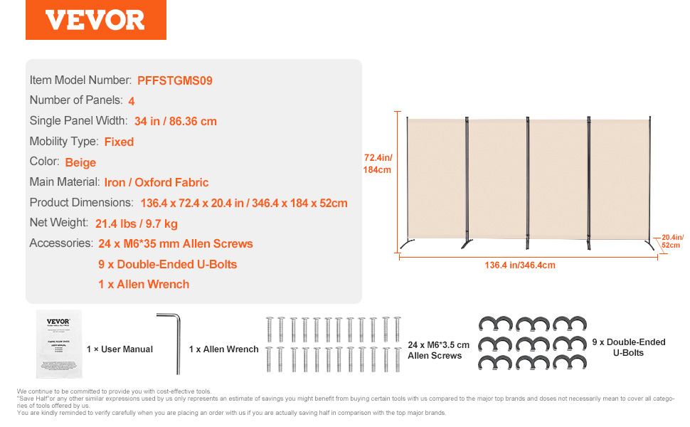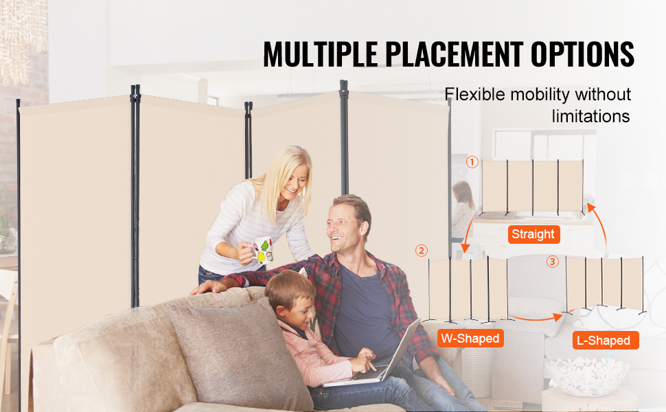 Tento skladací rozdeľovač izieb je ľahký a ľahko sa prenáša. Môžete ľahko vytvoriť dočasnú veľkú deliacu stenu a keď ju nepoužívate, môžete ju uložiť do rohu - ušetríte tak miesto.