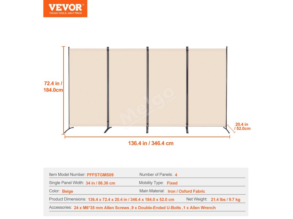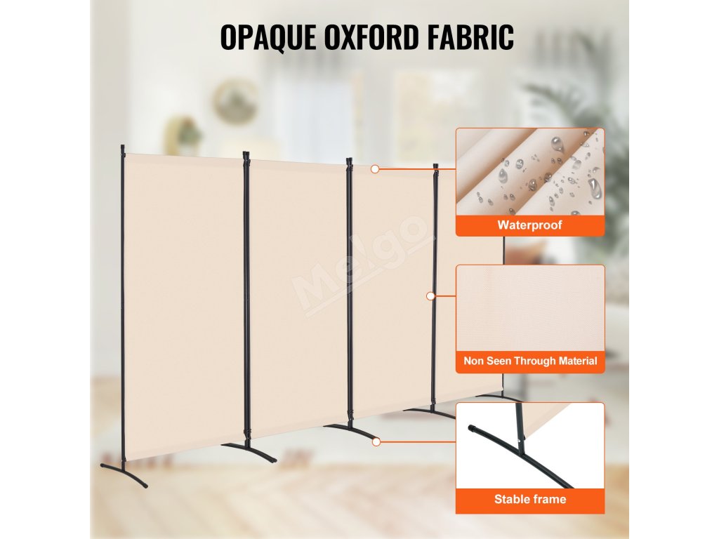 Skladací paraván 4 panely, prenosný samonosný, béžový, do kancelárie