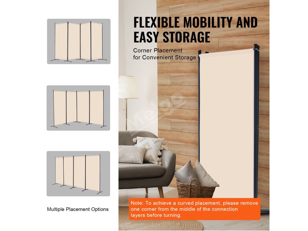 Tento skladací rozdeľovač izieb je ľahký a ľahko sa prenáša. Môžete ľahko vytvoriť dočasnú veľkú deliacu stenu a keď ju nepoužívate, môžete ju uložiť do rohu - ušetríte tak miesto.
