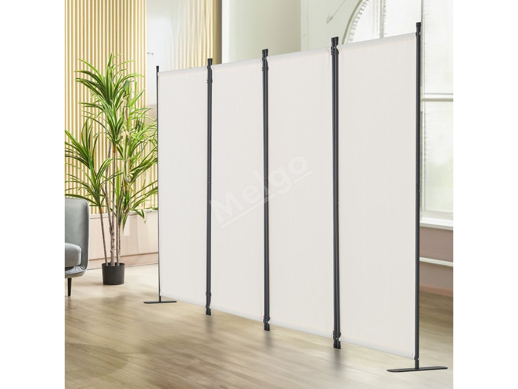 Skladací paraván 4 panely, textilný, samostatne stojaci, biely