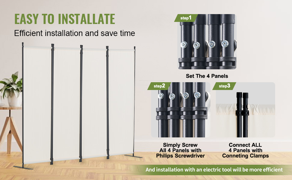 Keď sa nepoužíva, náš 4-panelový rozdeľovač izieb sa dá ľahko zložiť a uskladniť, pričom zaberie menej ako 1㎡ miesta.