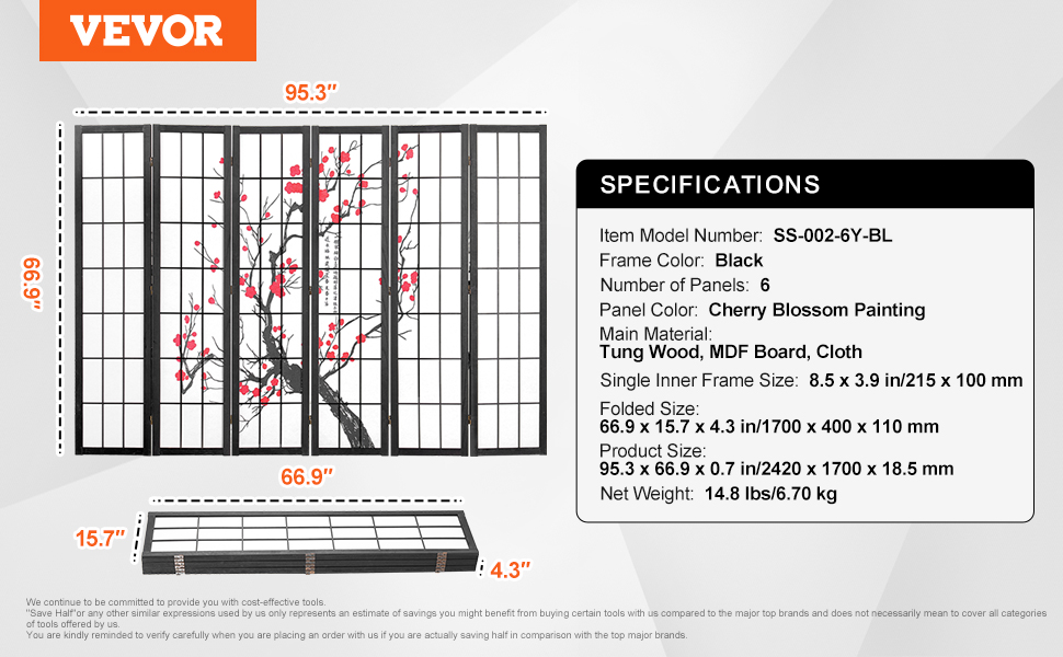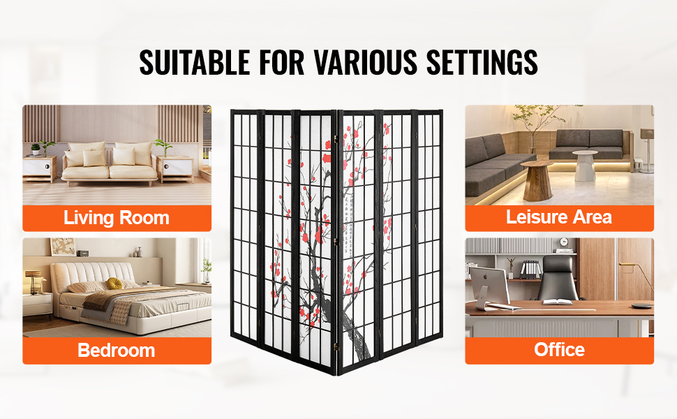 VEVOR Štýlový 6 panelov japonský Room Divider
